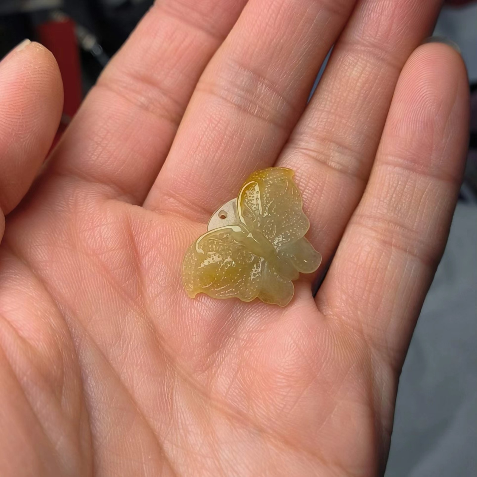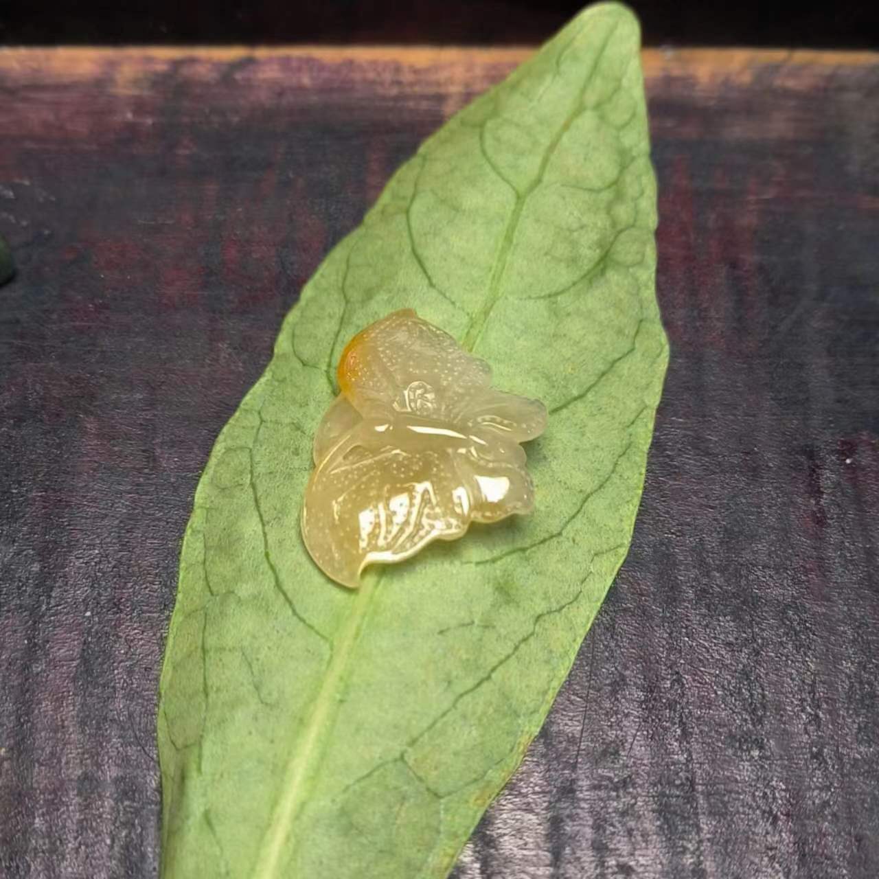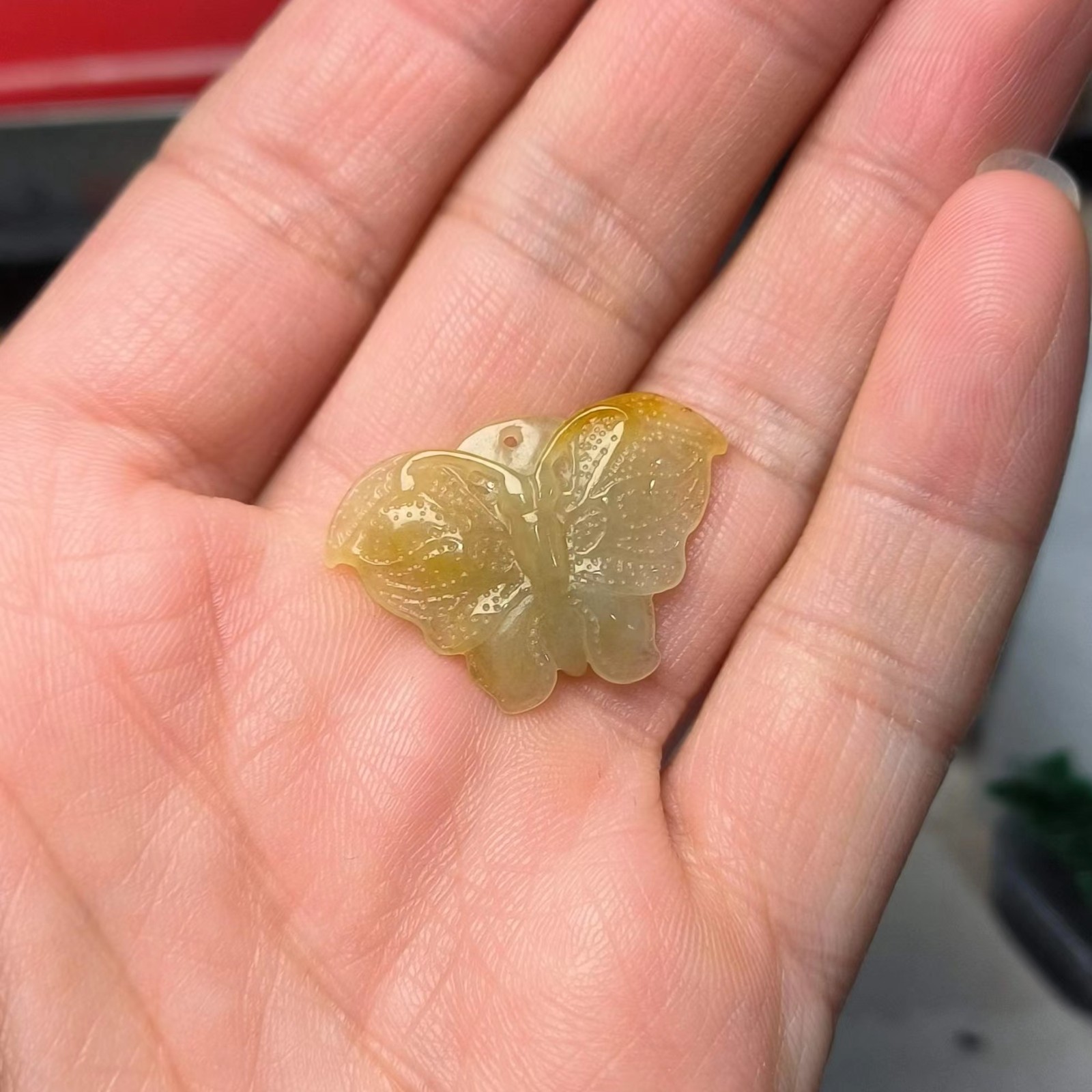 ⿷ 商品描述:满黄翡手工雕刻的蝴蝶,小巧精致美观。
