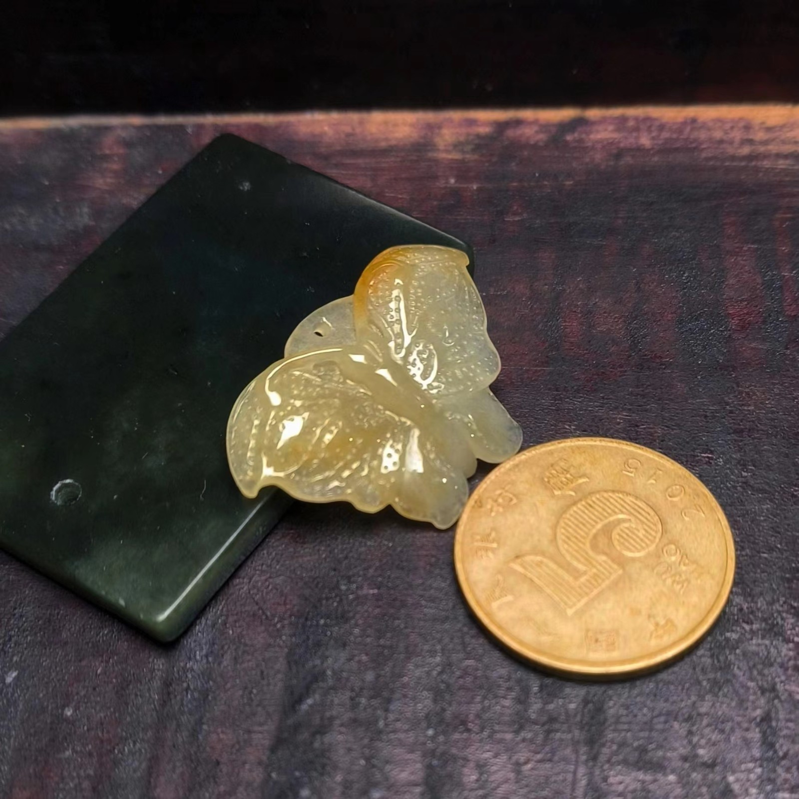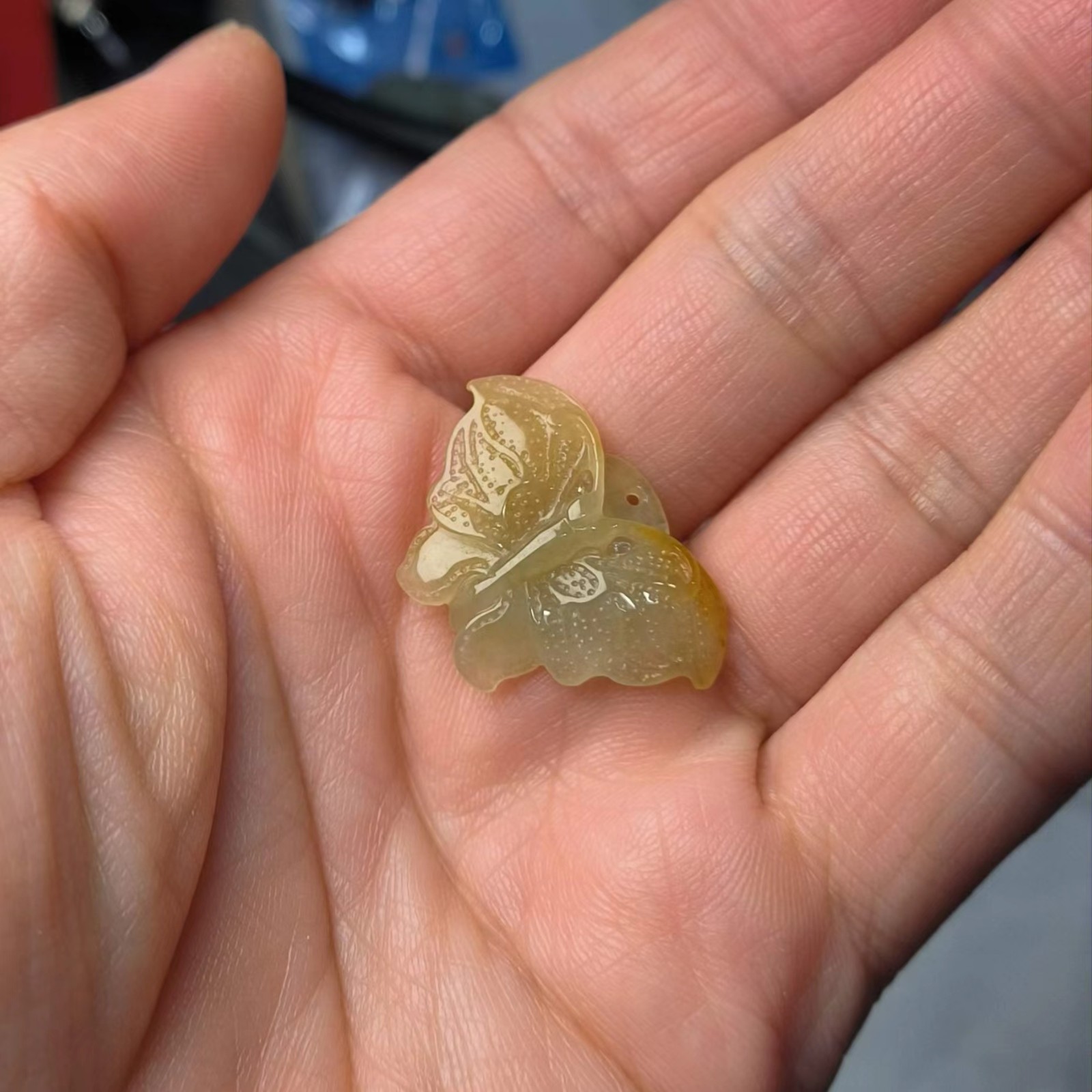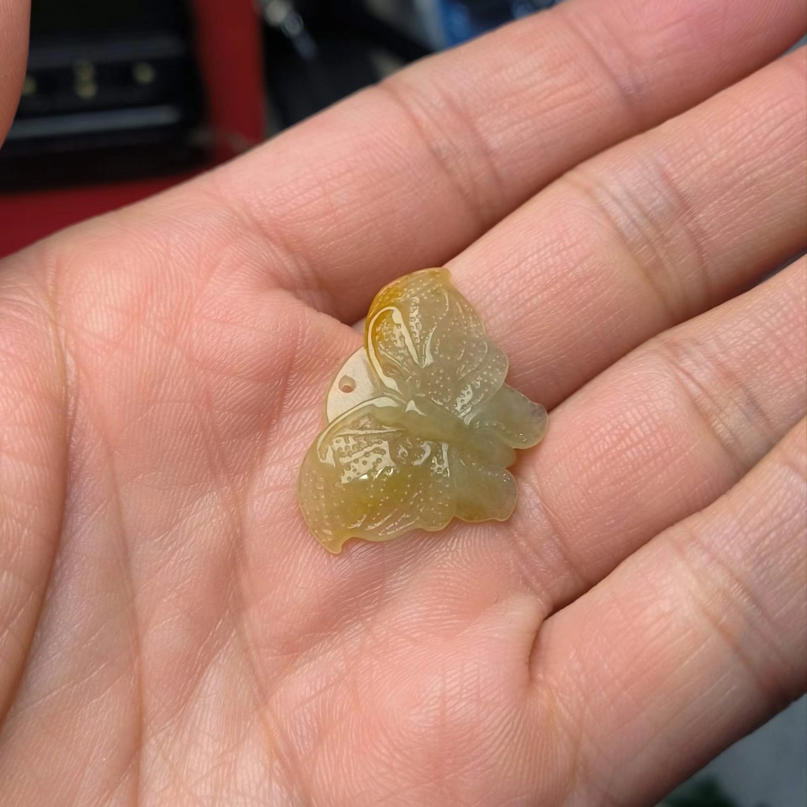 ⿷ 商品描述:满黄翡手工雕刻的蝴蝶,小巧精致美观。
