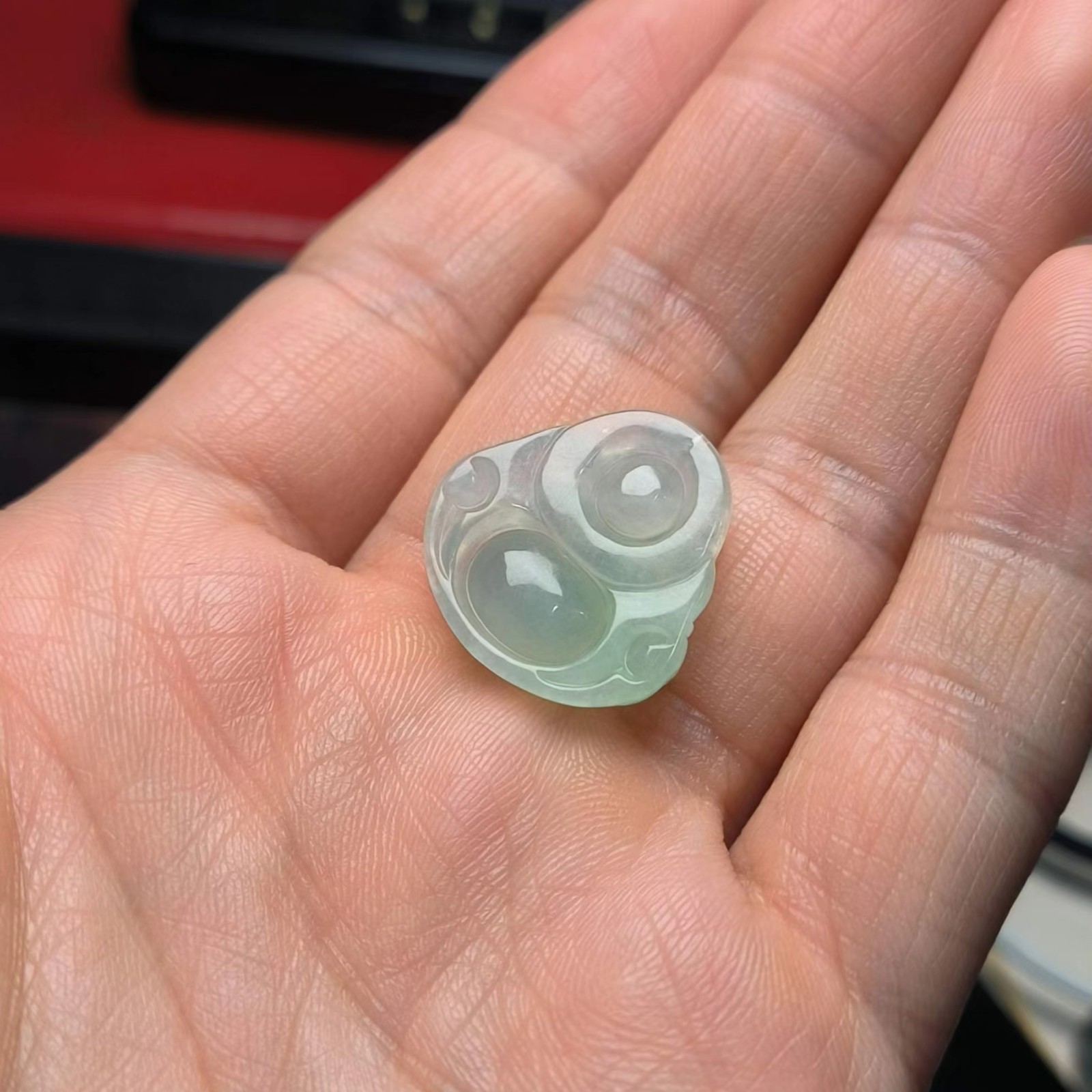 ⿻ 商品描述:非常清透的一块料子,经手工雕刻而成,清爽冰透特别漂亮,开脸栩栩如生神态喜庆,喜感十足。