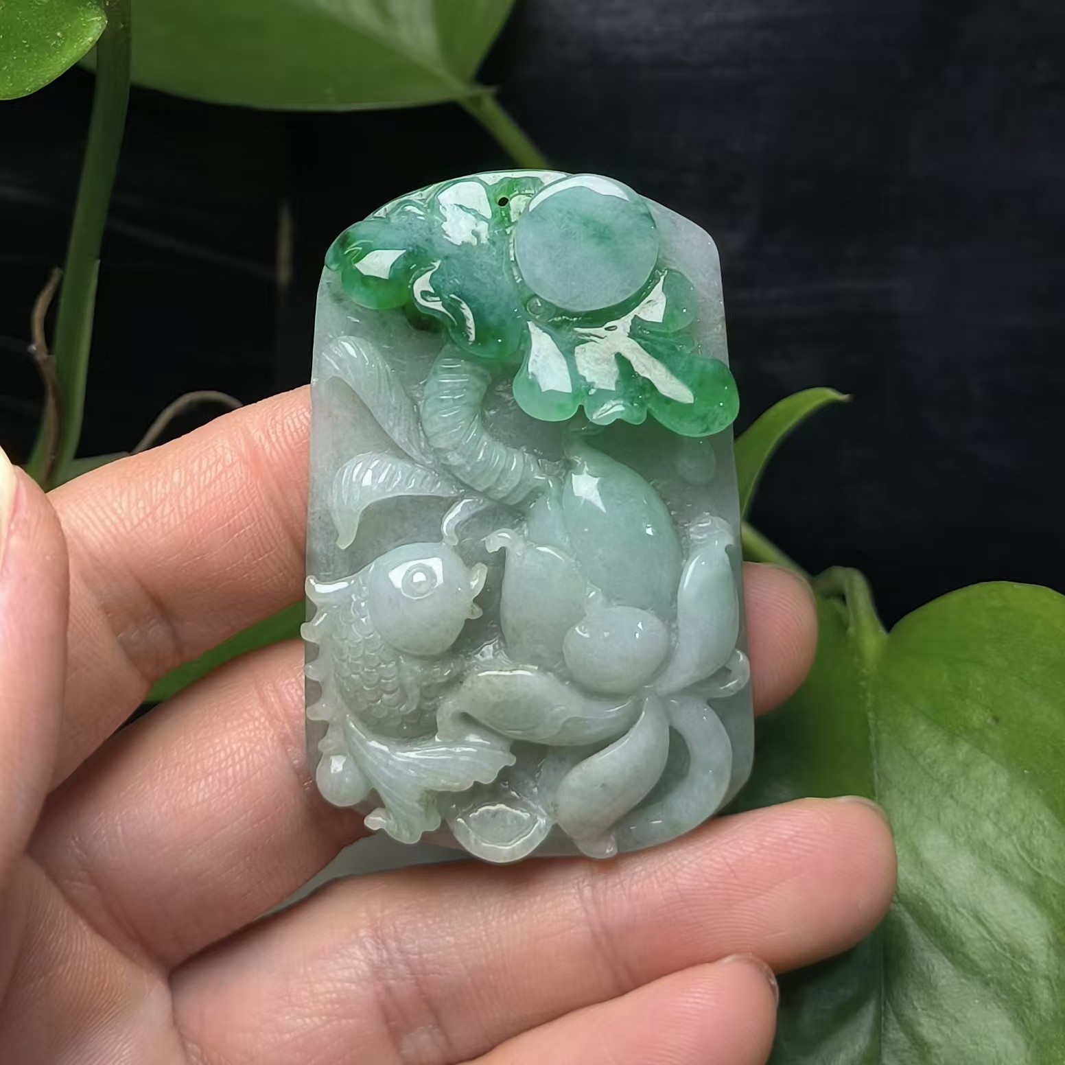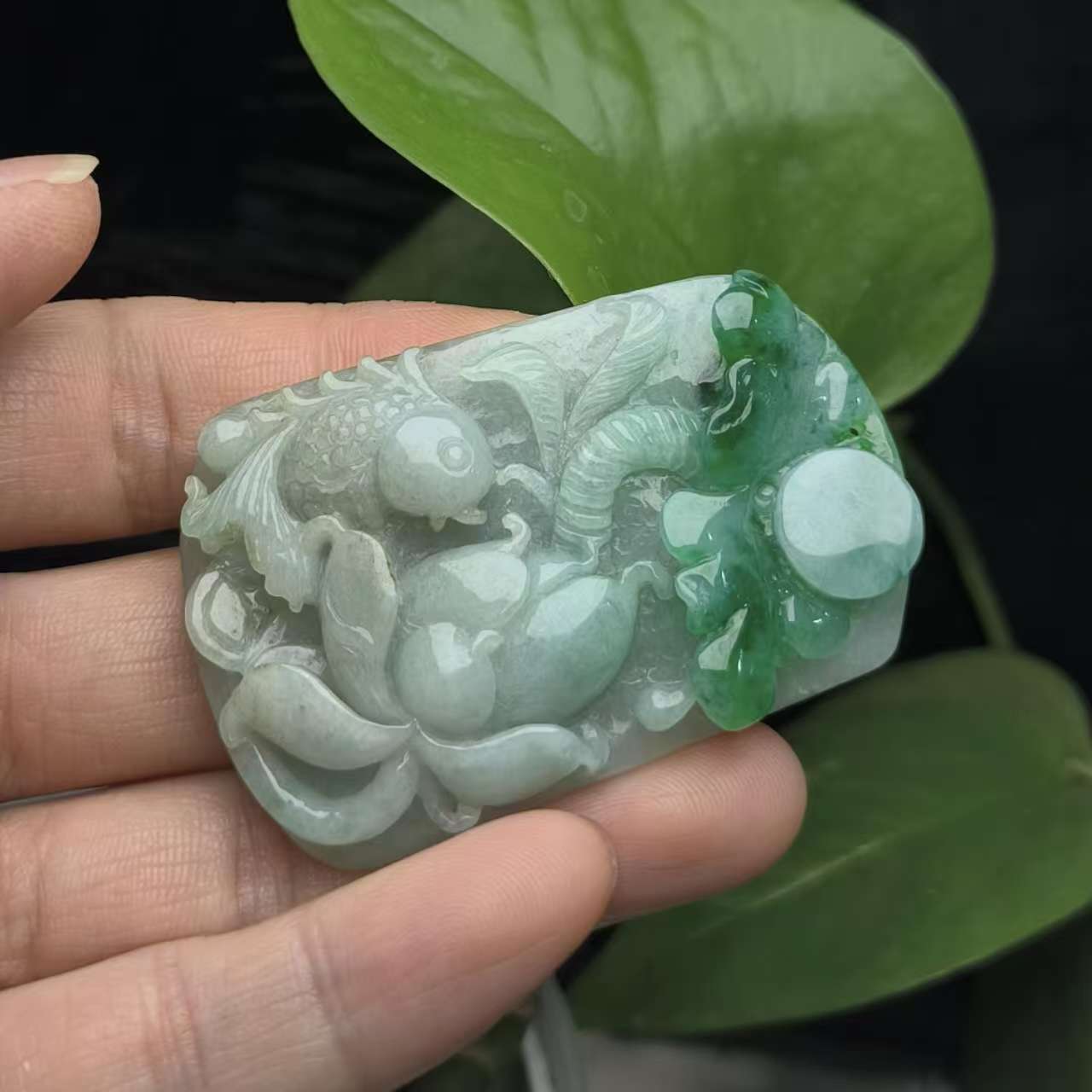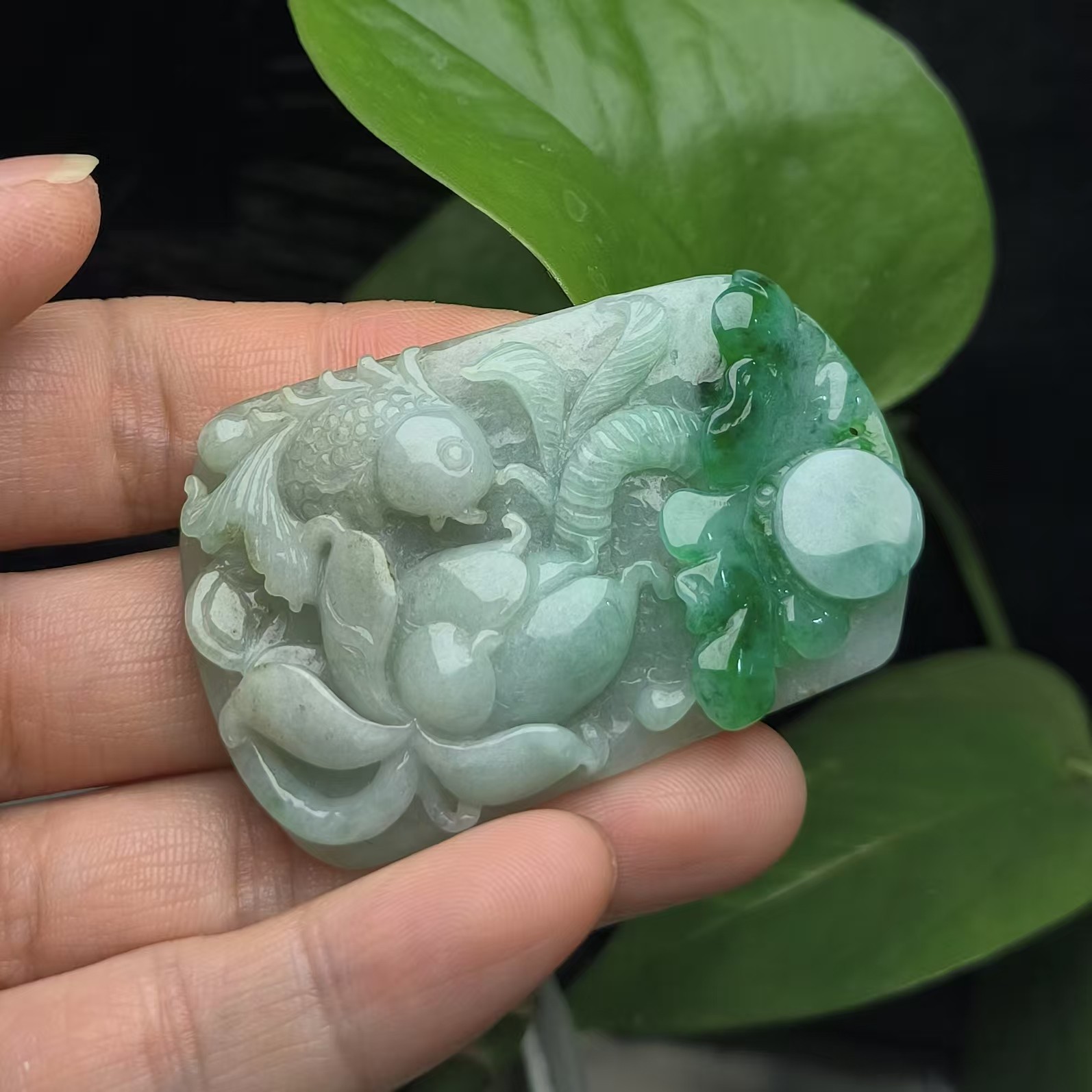 ⿻ 商品名称:浓绿荷叶 连年有余 鱼荷叶 翡翠A货