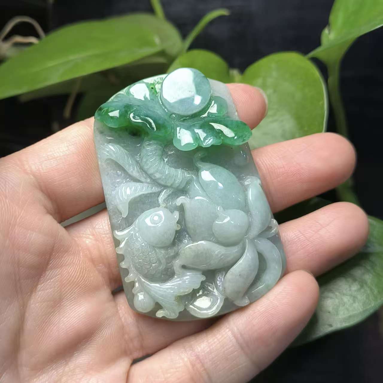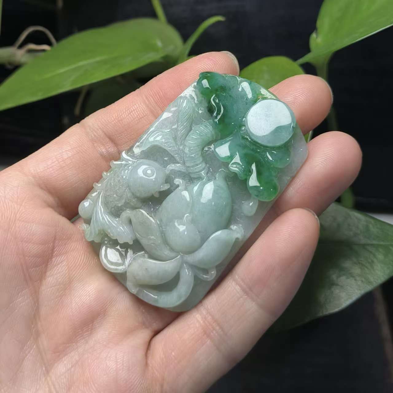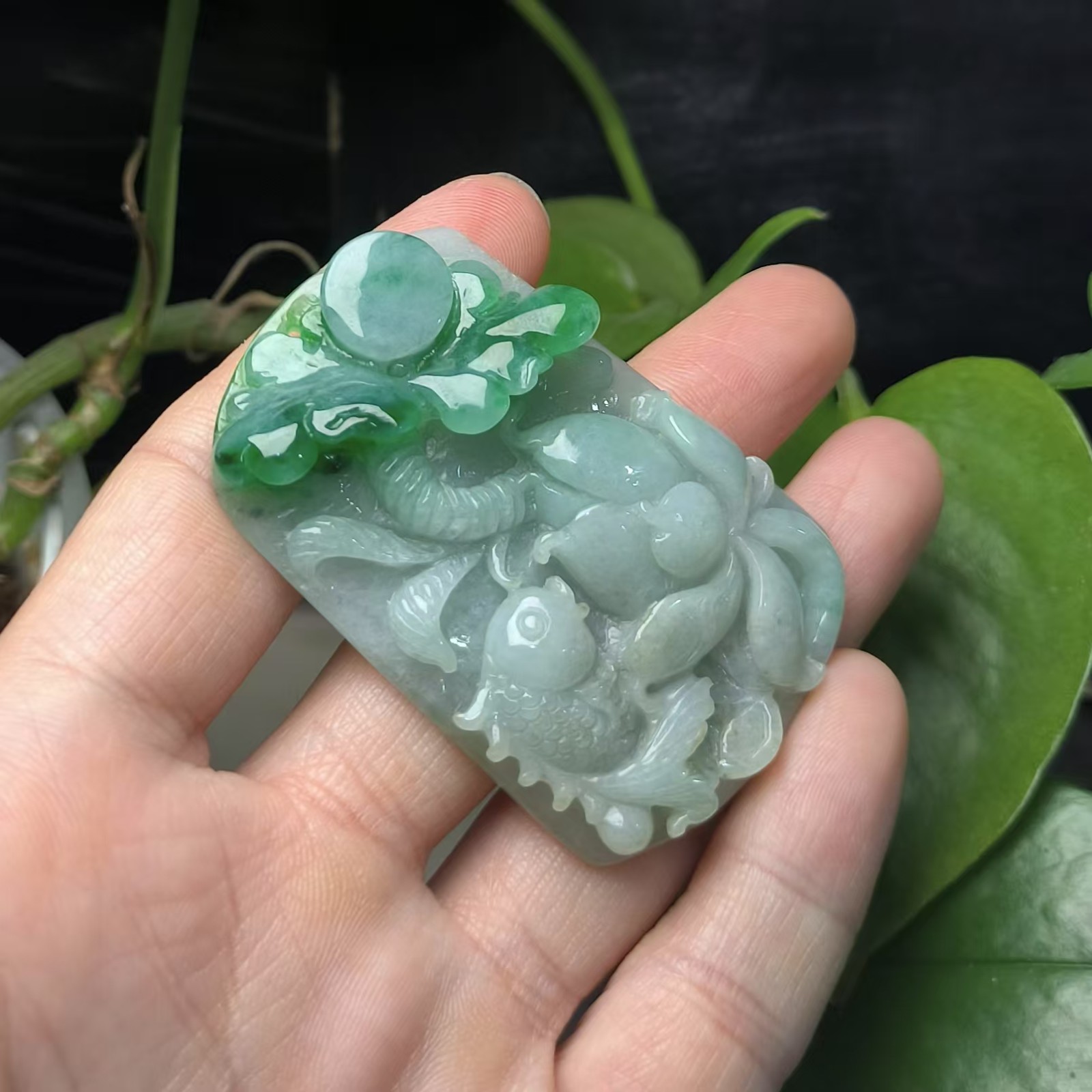 ⿻ 商品名称:浓绿荷叶 连年有余 鱼荷叶 翡翠A货