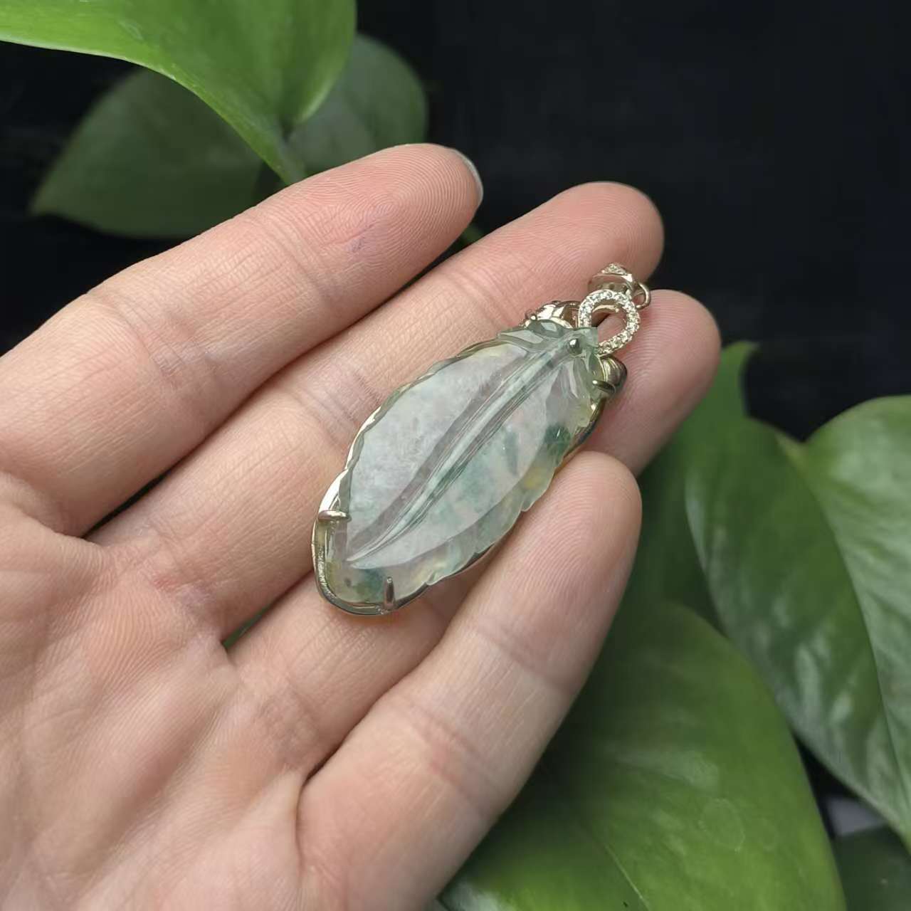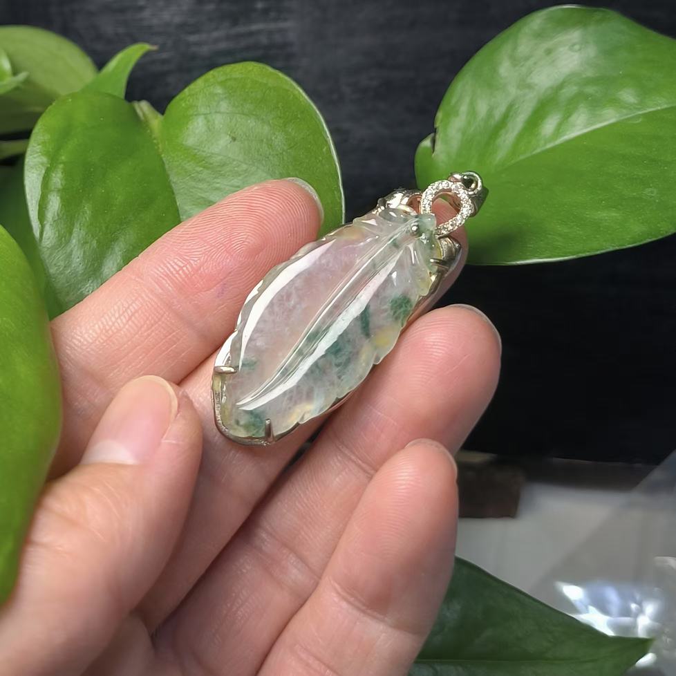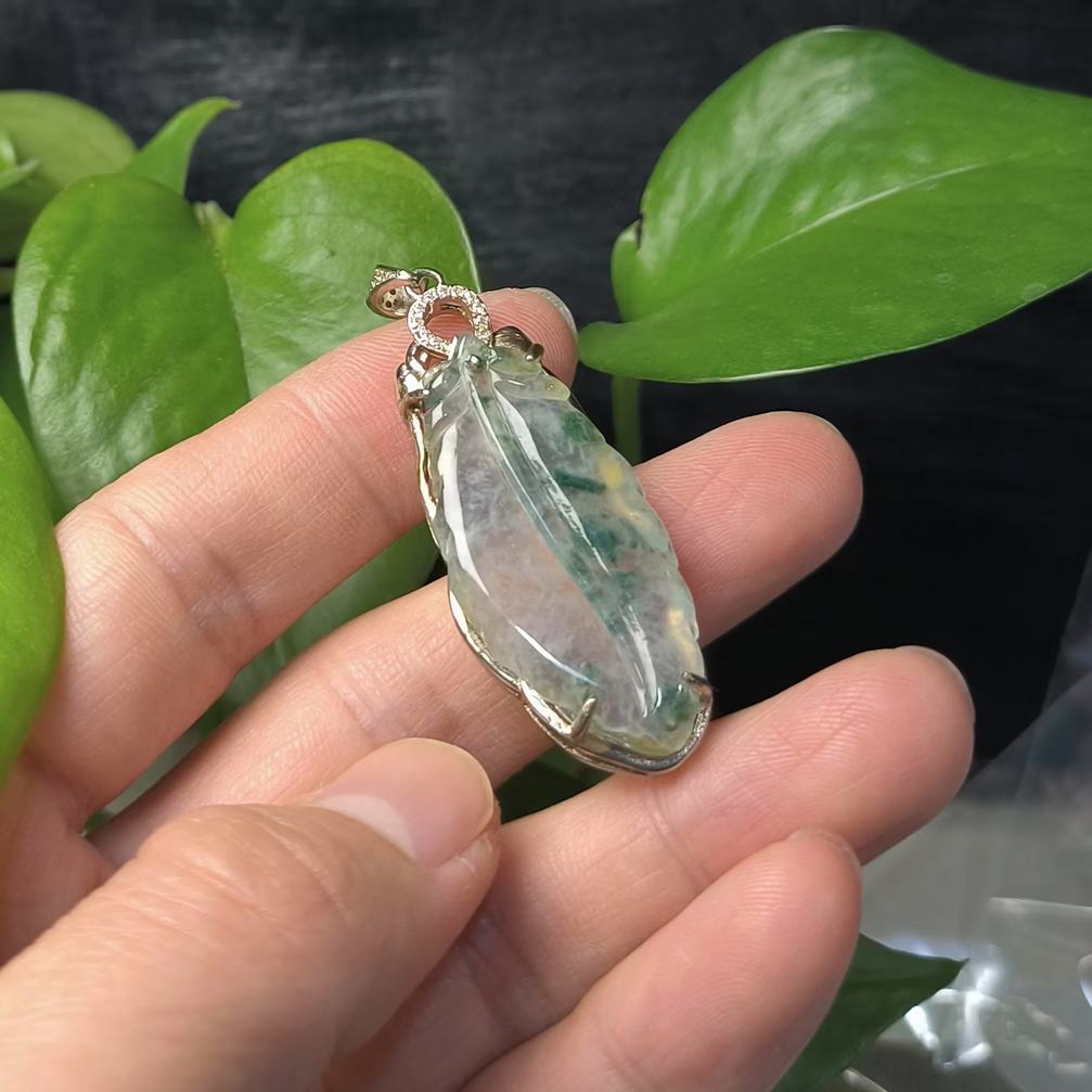 ⿻ 商品名称:冰种 飘蓝花 树叶 翡翠A货