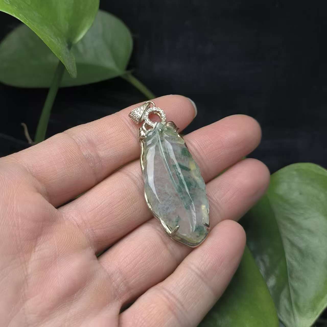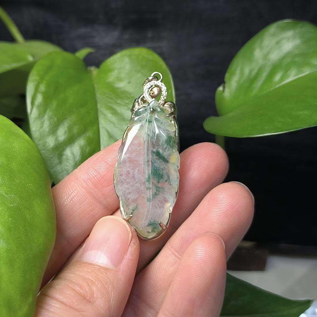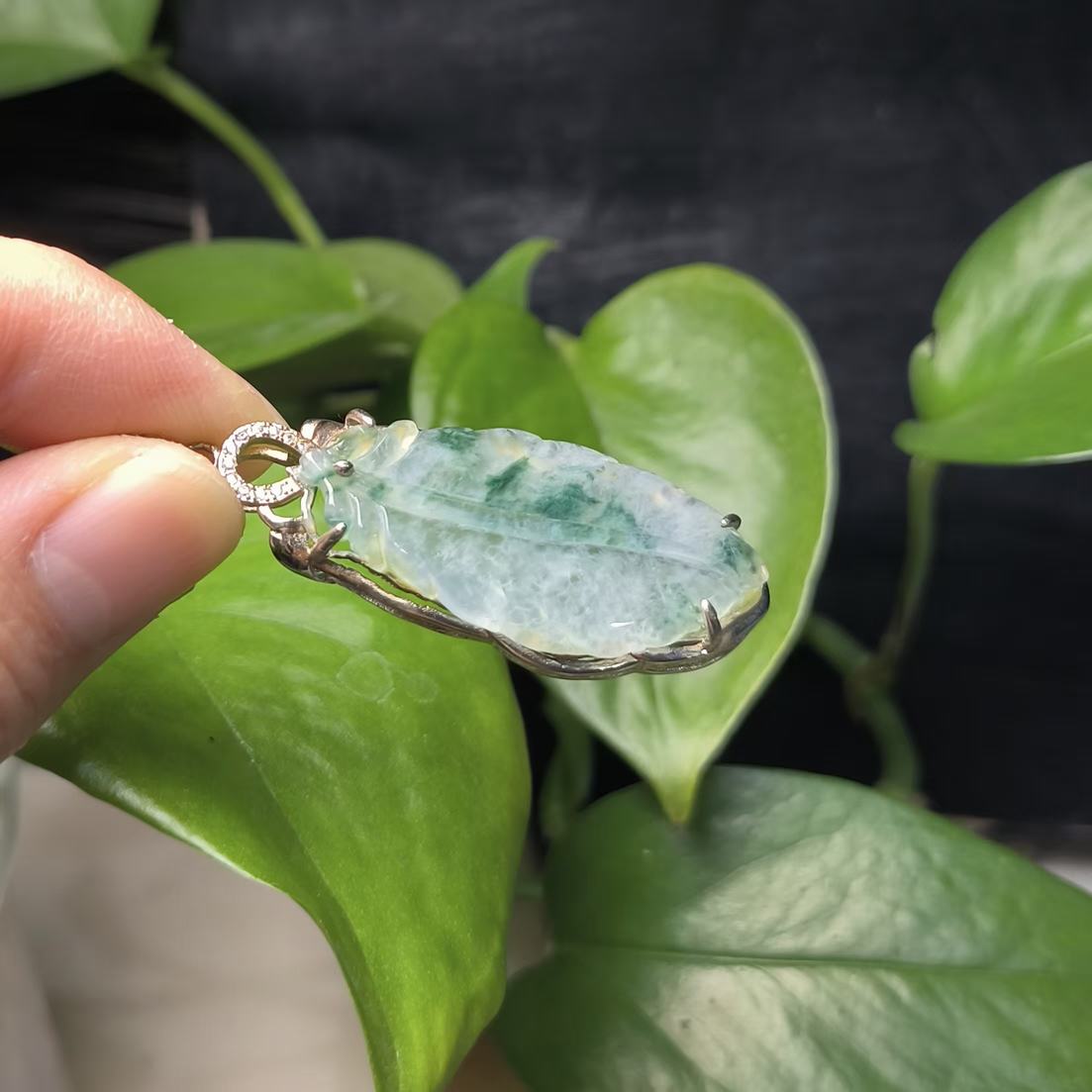 冰种 飘蓝花 树叶 翡翠A货 2025020039