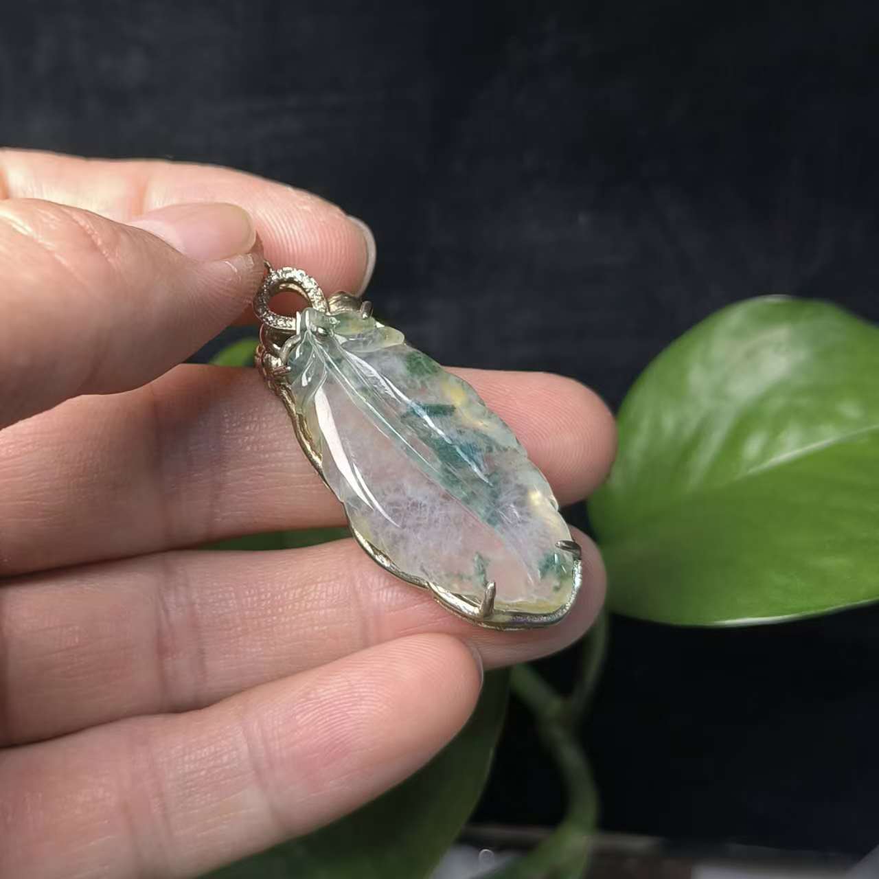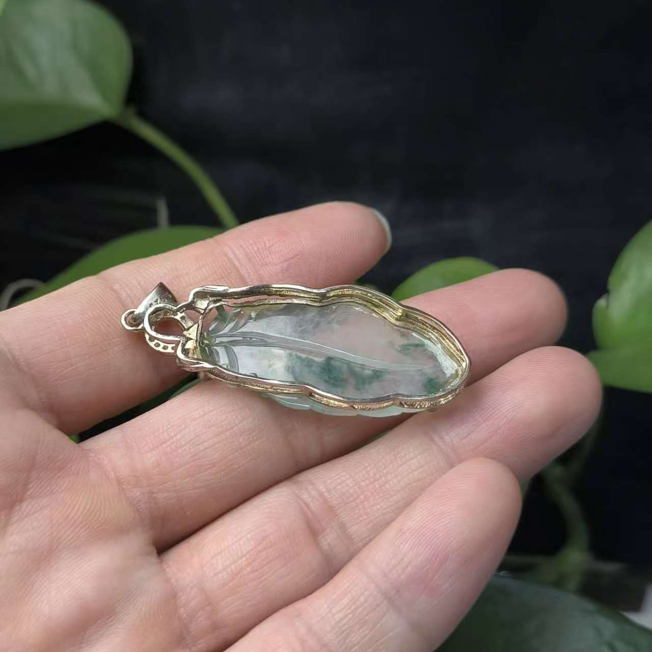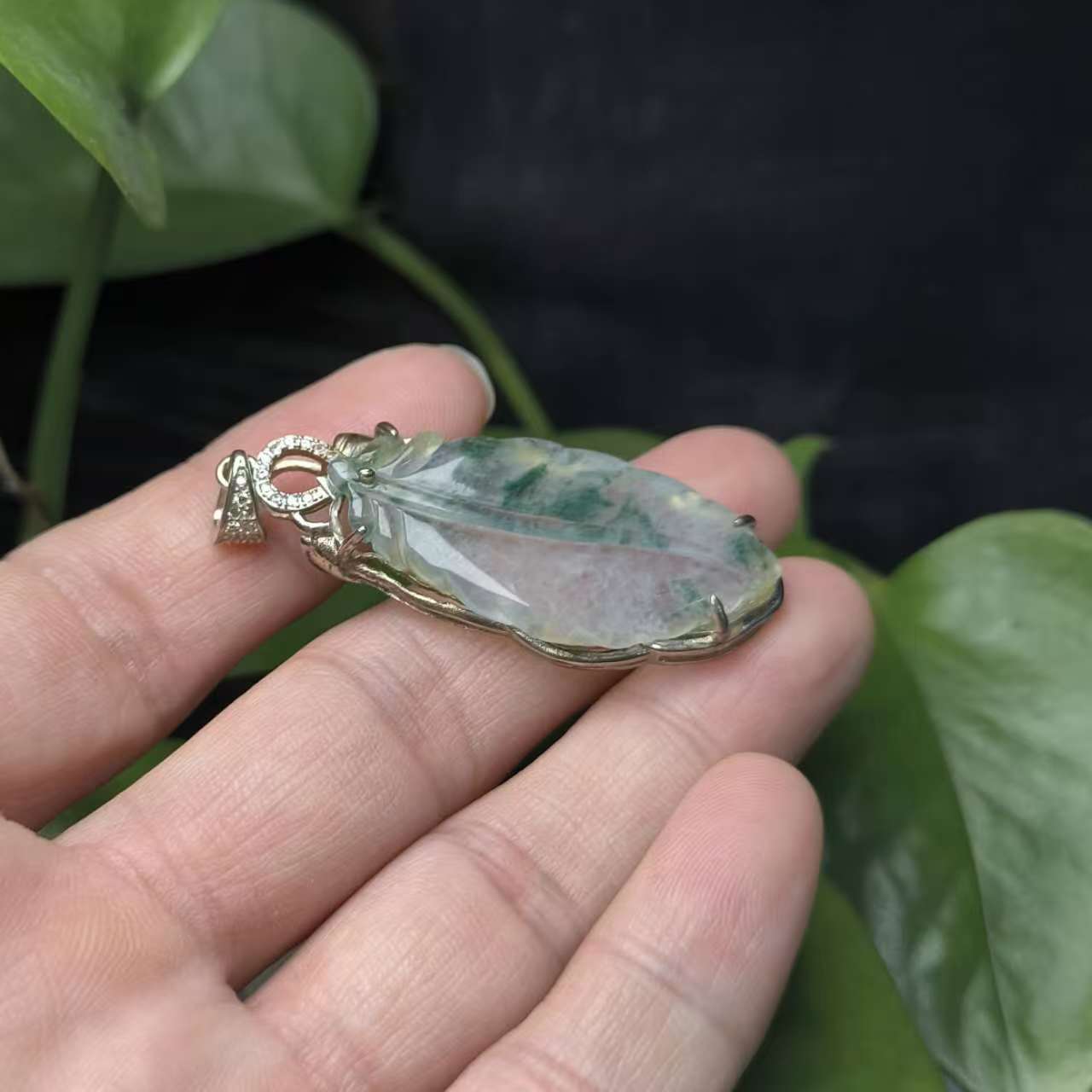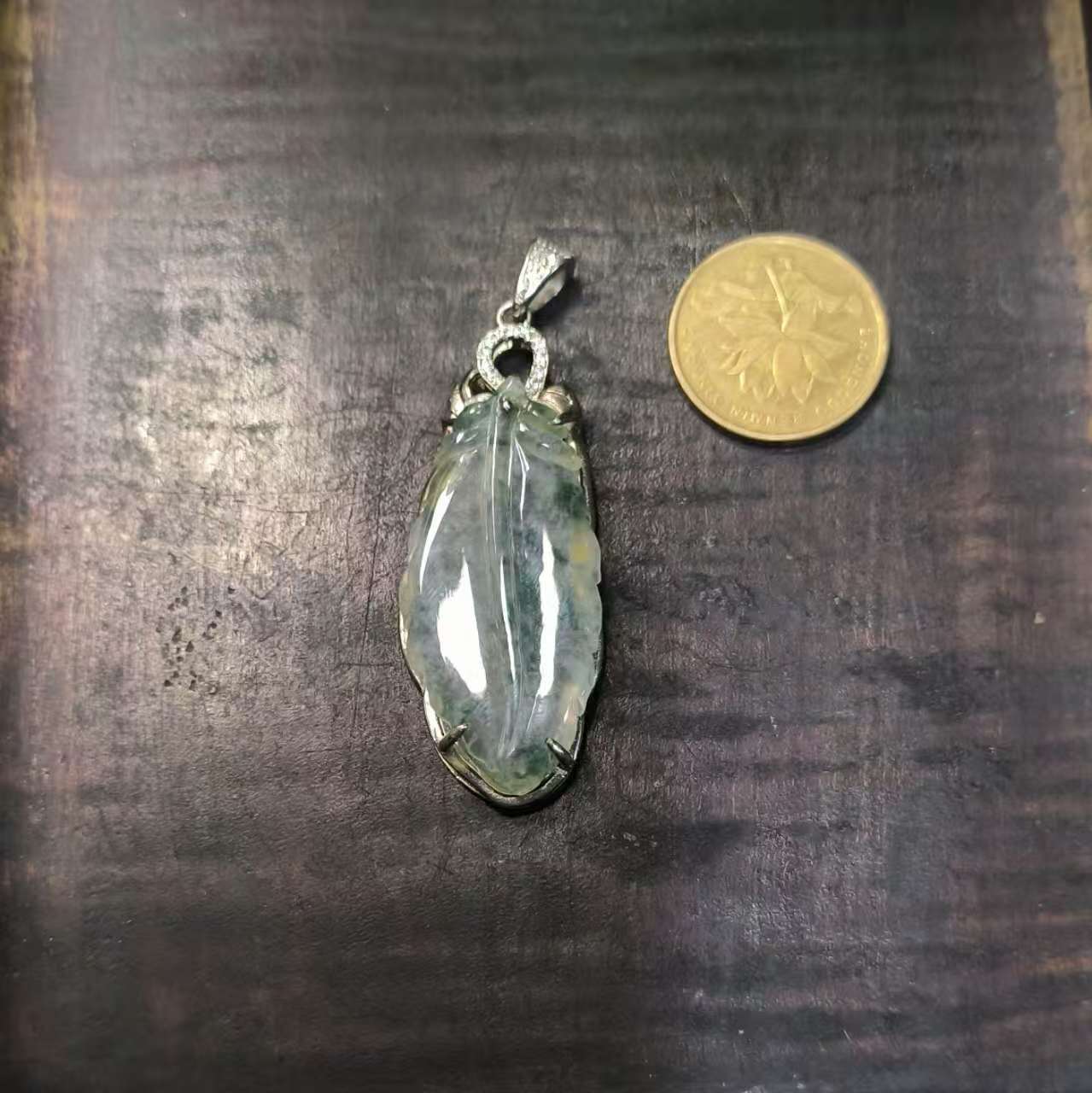 ⿻ 商品描述:料子水透飘蓝花,非常漂亮。玉雕叶子题材的起源,可以追溯到古代:那时的人们将叶子视为生命的象征,寓意着生机勃勃、生生不息,每一片叶子都仿佛蕴含着大自然的生机。叶又谐音“业”。金枝玉叶中玉叶一词在古代又象征身份高贵,尤其是身份尊贵的女子。