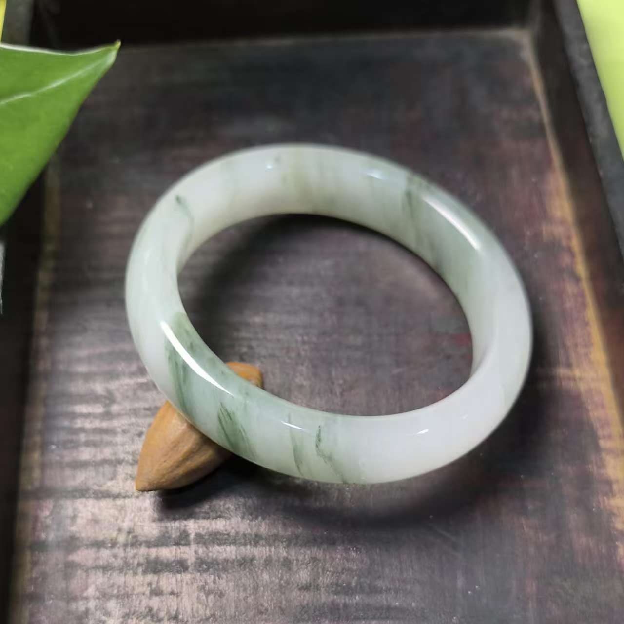 ※商品描述:天山翠手镯为一种石英质的玉石,苏州方圆玉器评级给出了产地标识为新疆,并给出了F45分的高分品质分数,说明该件采用新疆较优良的天山翠原石制作而成。天然的天山翠佩戴之后具有快速变润的特点,颜色清爽飘逸。此件性价比突出