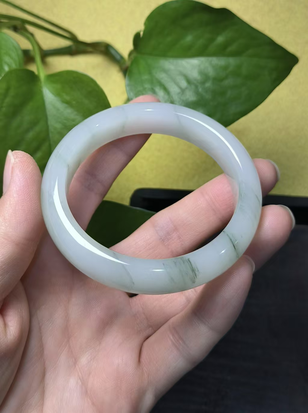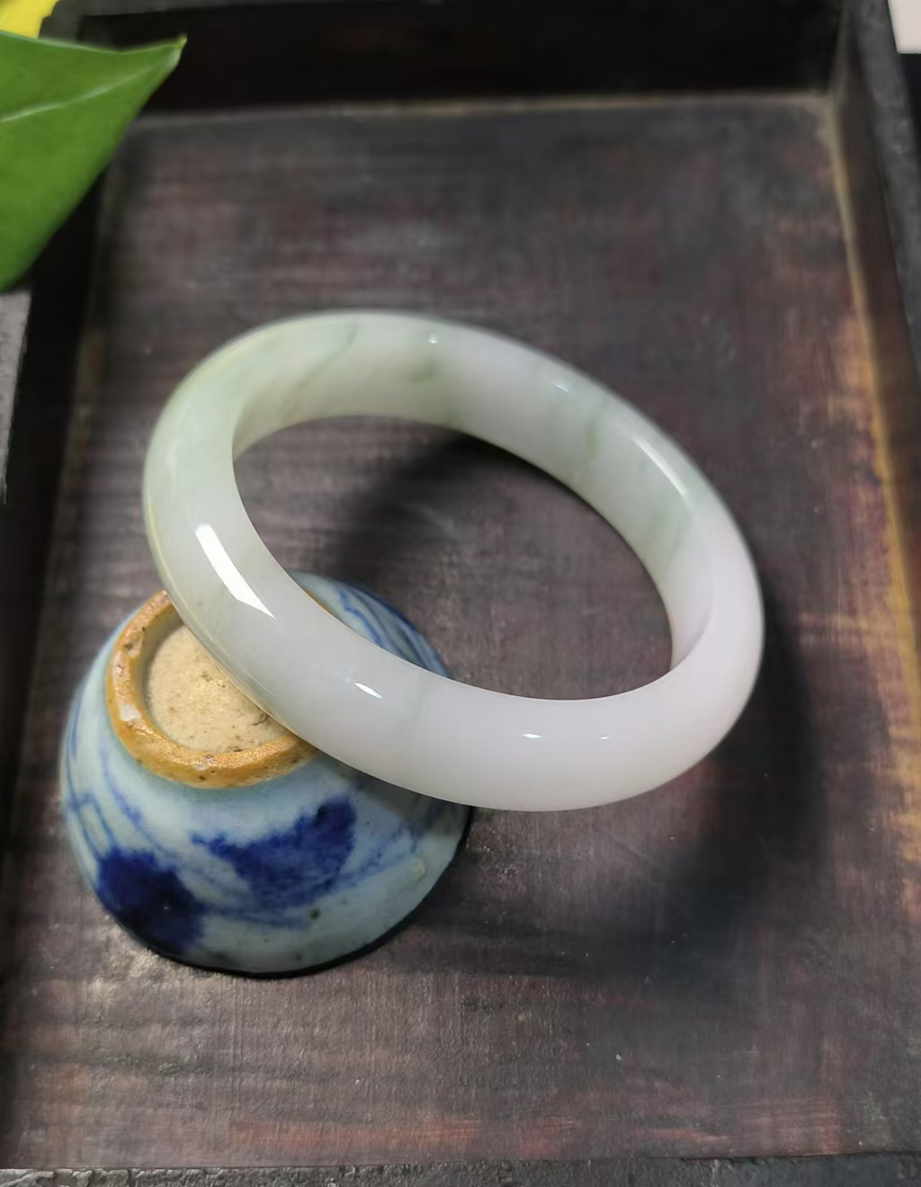 ※商品描述:天山翠手镯为一种石英质的玉石,苏州方圆玉器评级给出了产地标识为新疆,并给出了F45分的高分品质分数,说明该件采用新疆较优良的天山翠原石制作而成。天然的天山翠佩戴之后具有快速变润的特点,颜色清爽飘逸。此件性价比突出