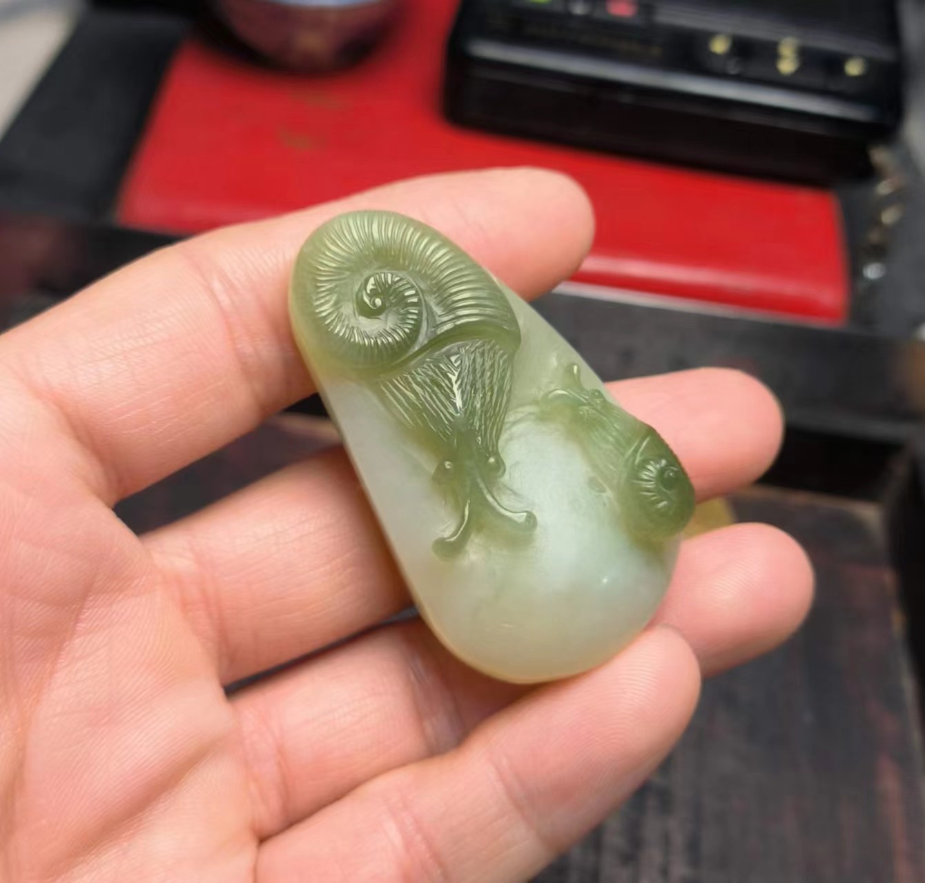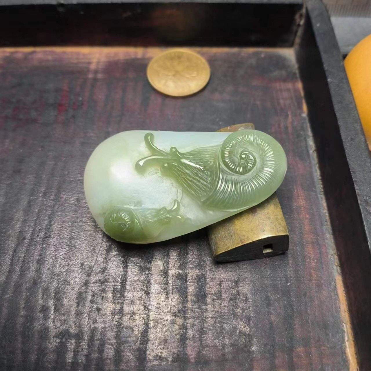 ⸙ 商品名称:和田玉带翠 扭转乾坤 蜗牛