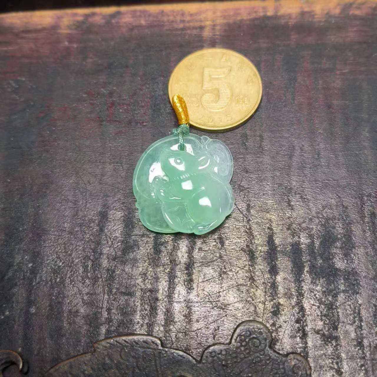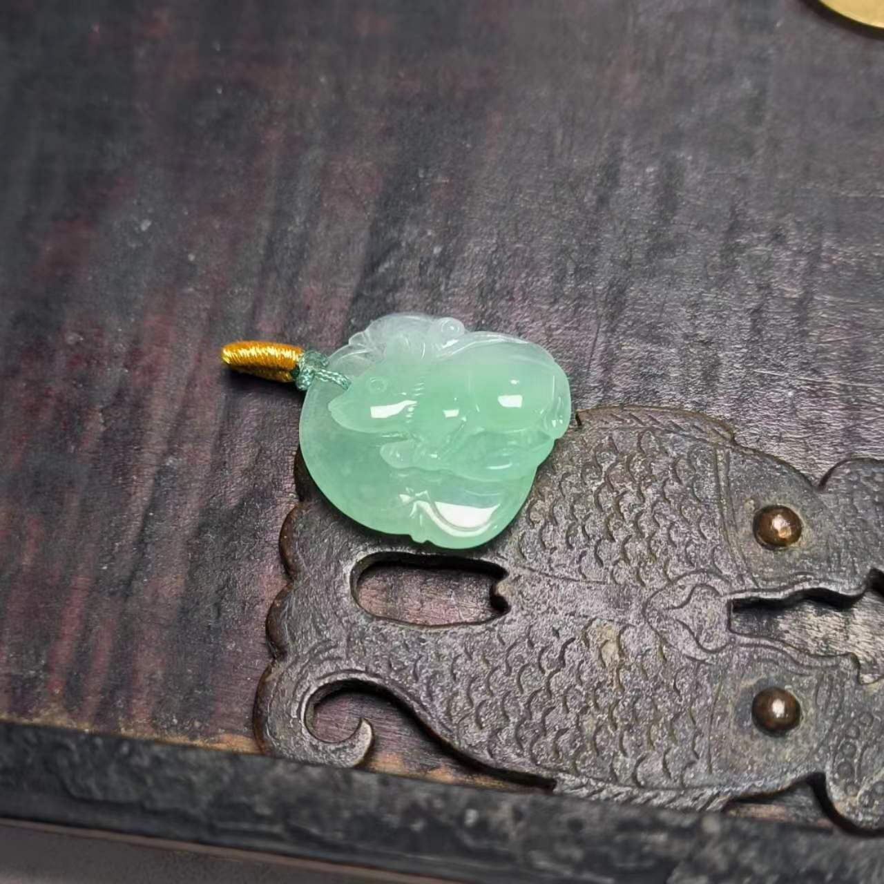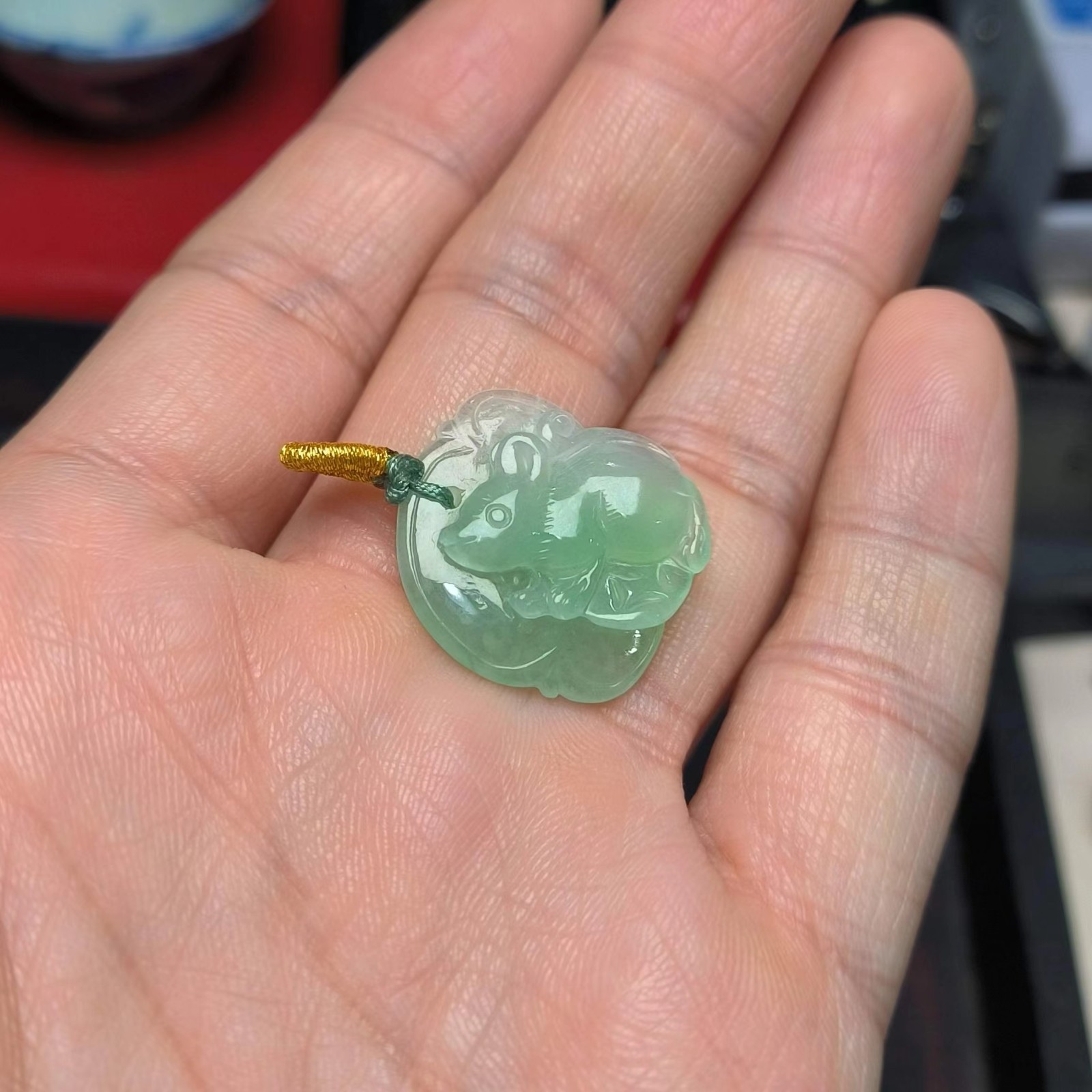 ⸙ 商品描述:颜色清爽,绿色喜人,玉质细腻。手工雕刻的老鼠金钱如意,寓意鼠(数)你有财,灵鼠运财。