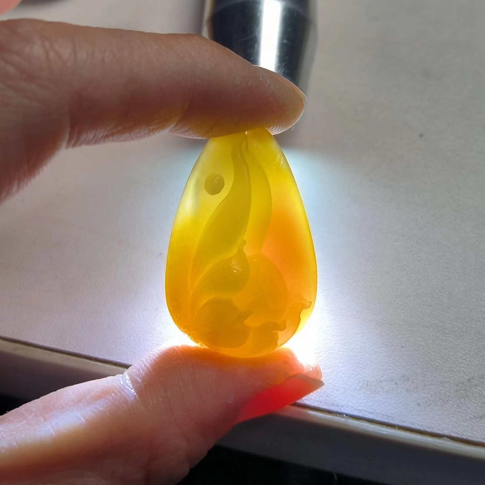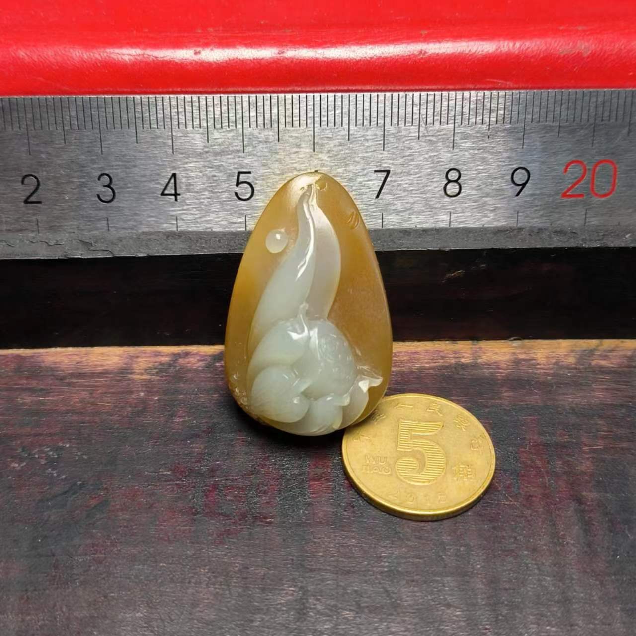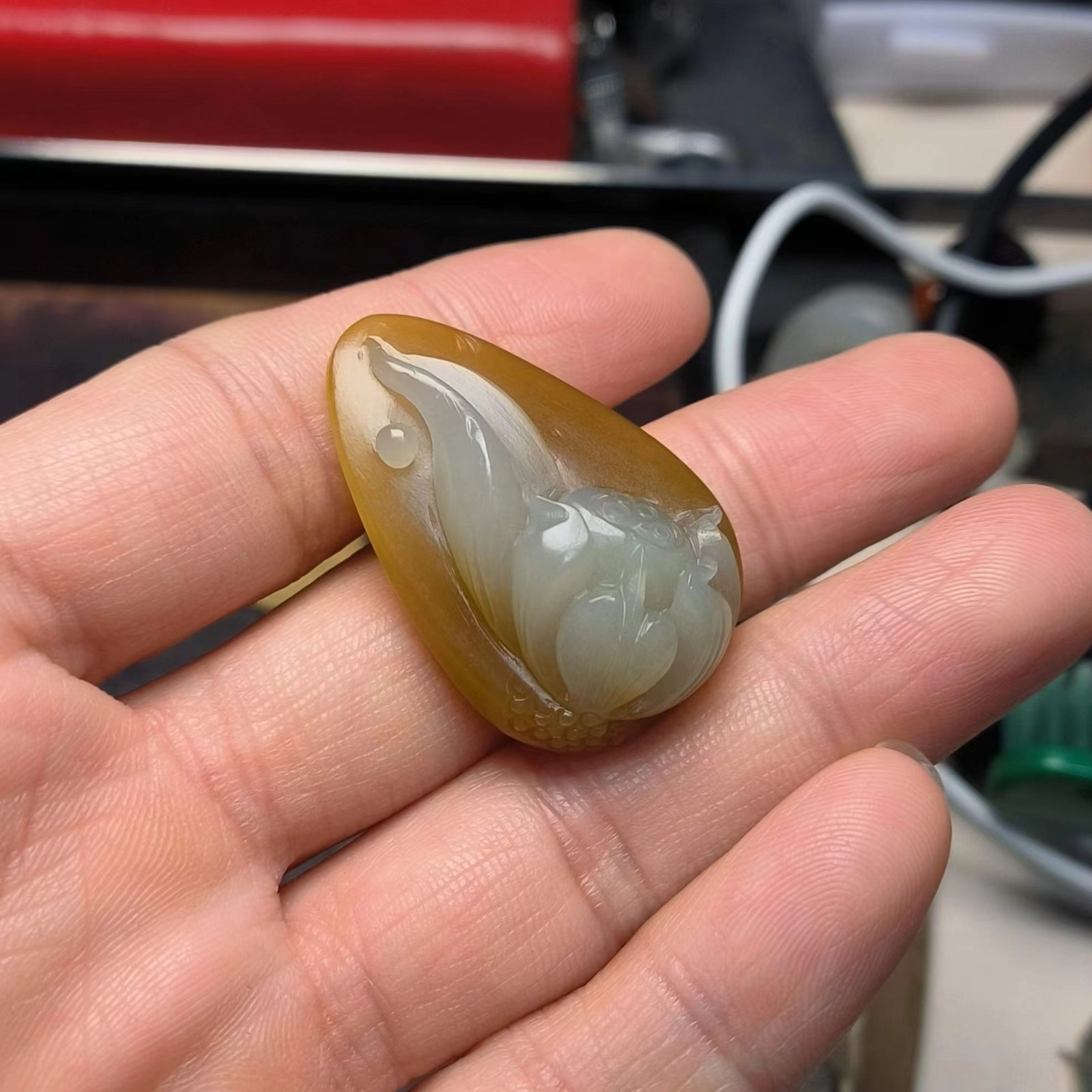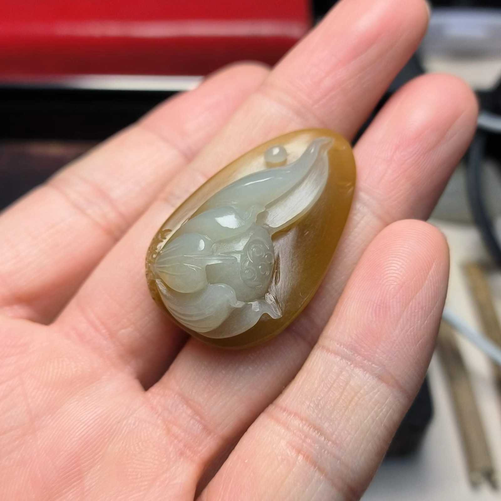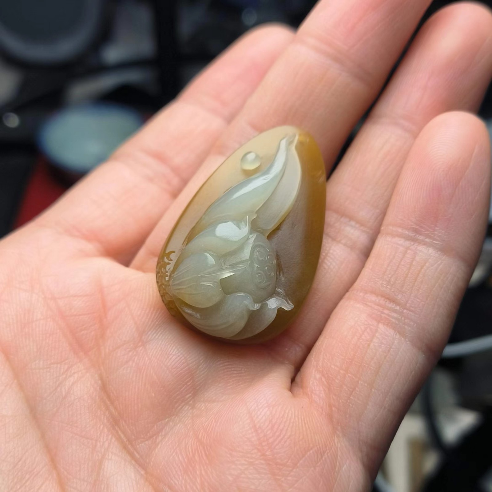 ⸙ 商品描述:手工雕刻的荷花线条流畅,比例恰当观感舒适,玉质细腻温润,黄糖色正且浓,寓意良好。