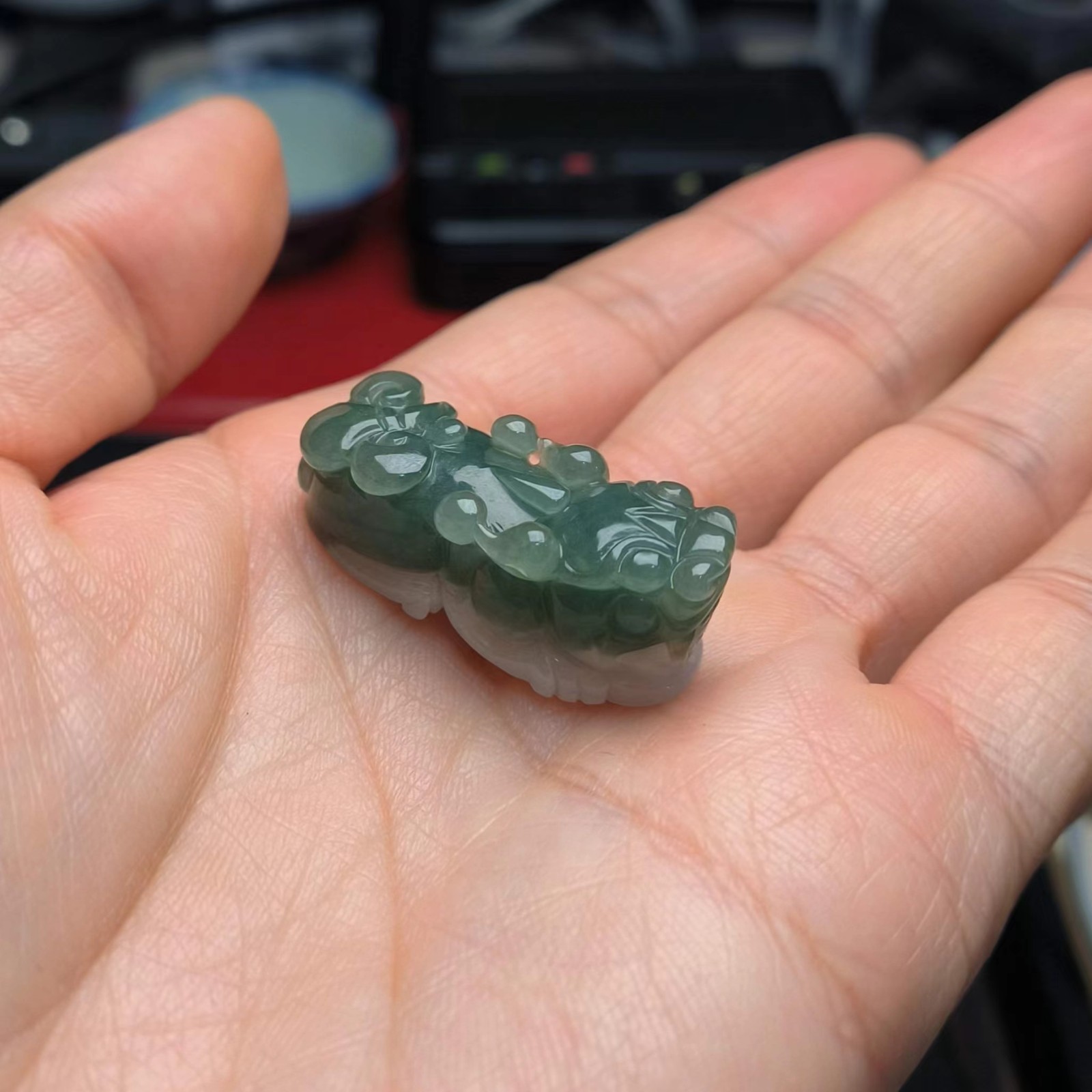翡翠A货 油青 貔貅 俏色 巧色 巧雕 2024120049