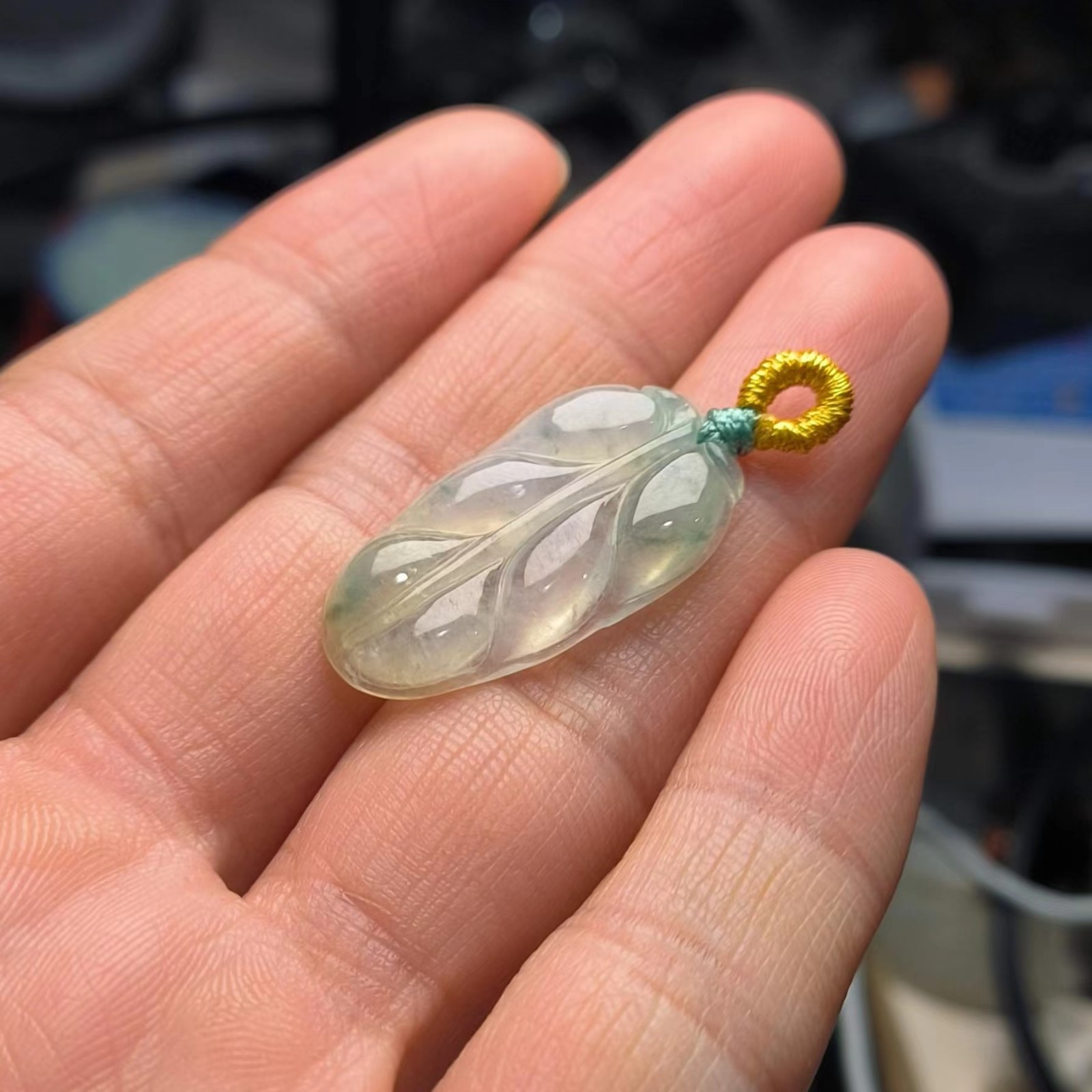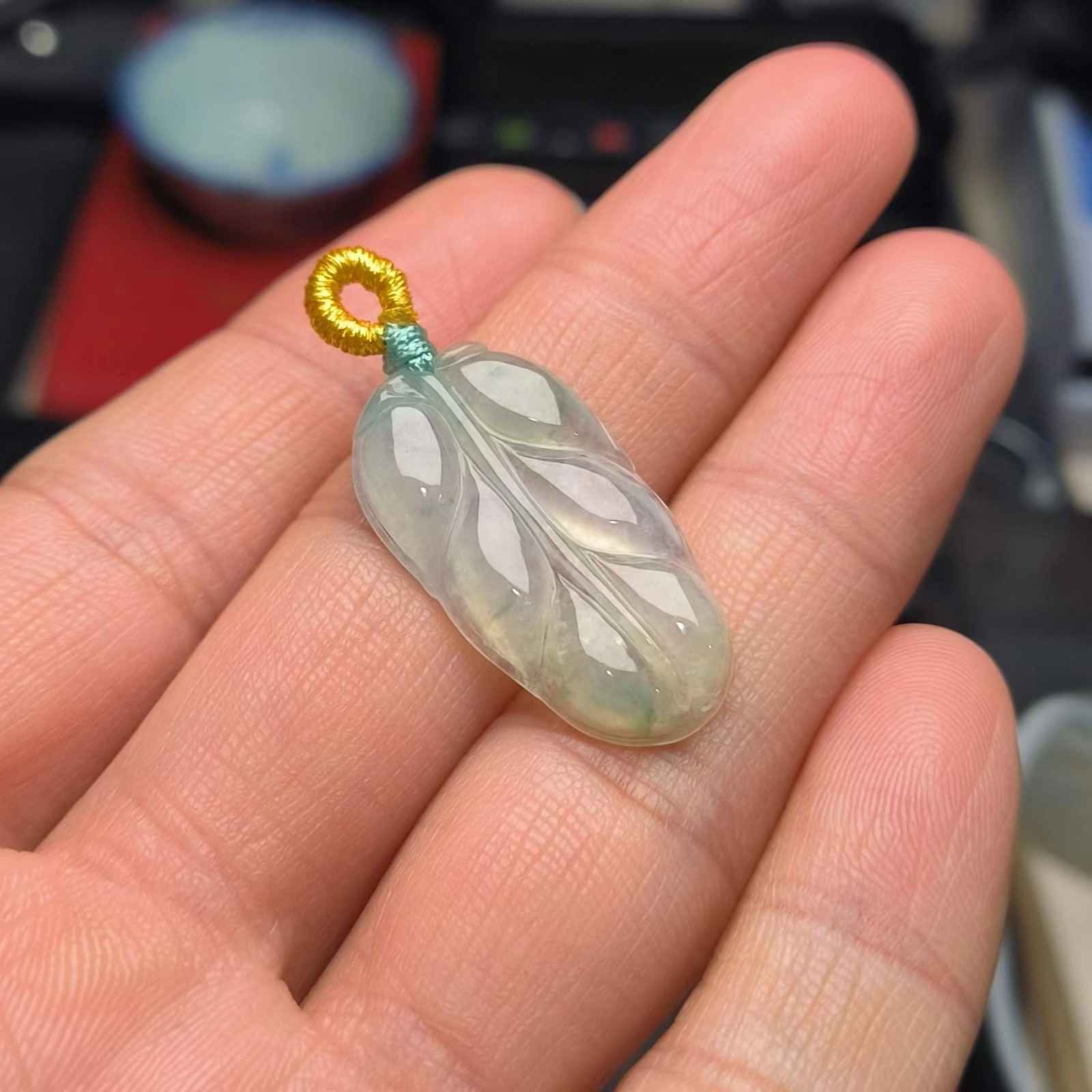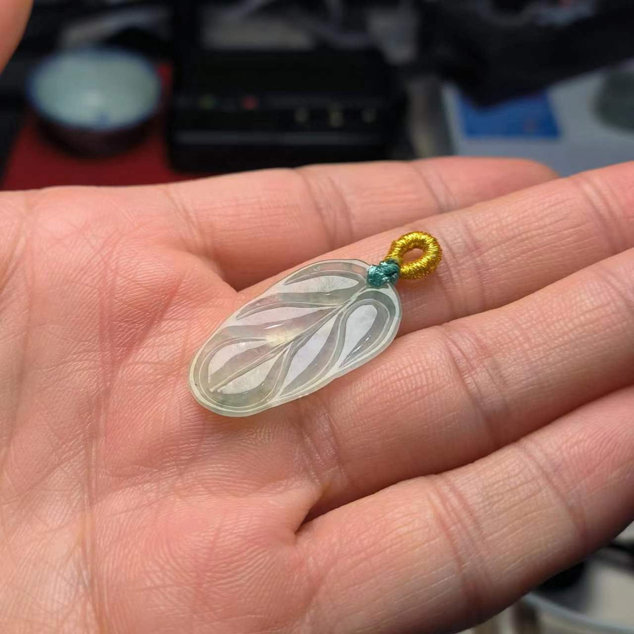 ⸙ 商品描述:冰种树叶,晶莹冰爽,手工雕刻整体线条流畅,观感很舒适。带一些飘花显得更加优美。