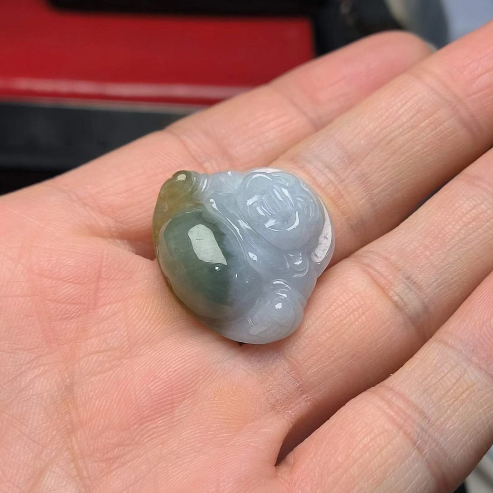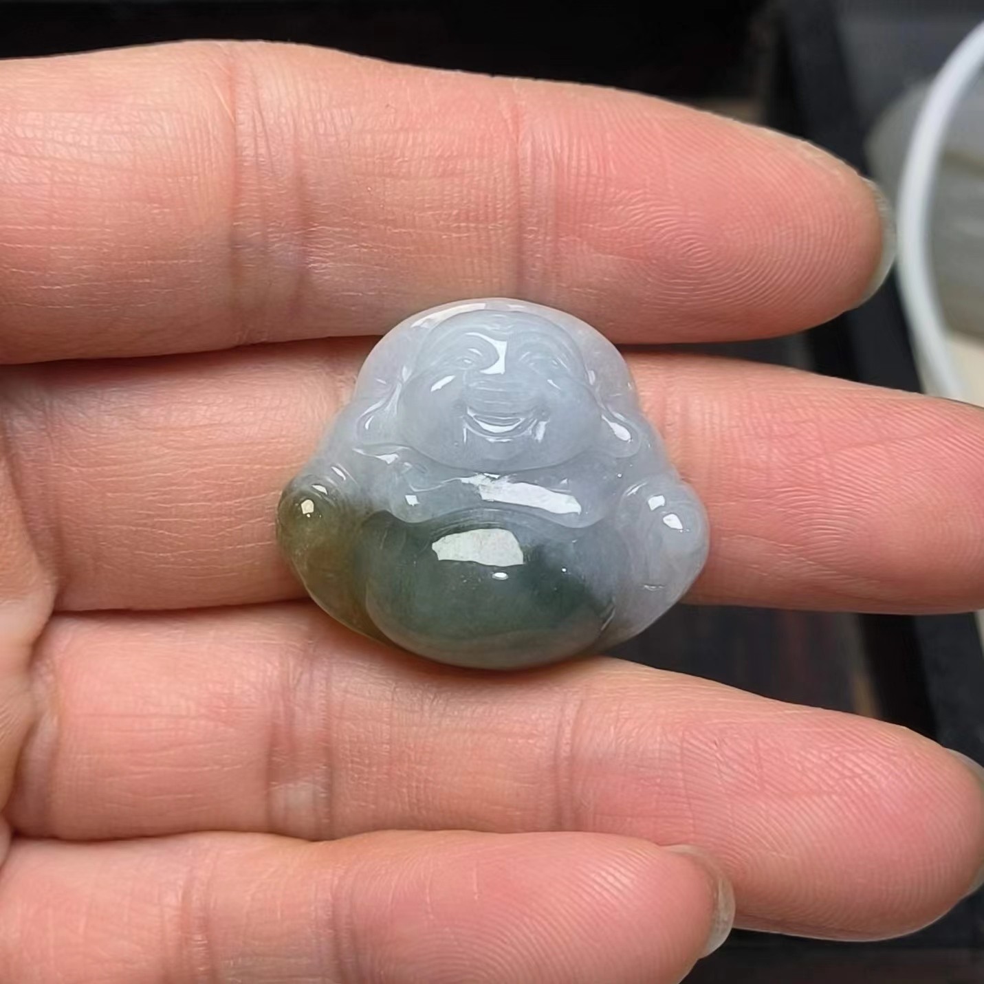 ⿻ 商品名称:油青俏色 弥勒佛 巧色 俏雕 翡翠A货