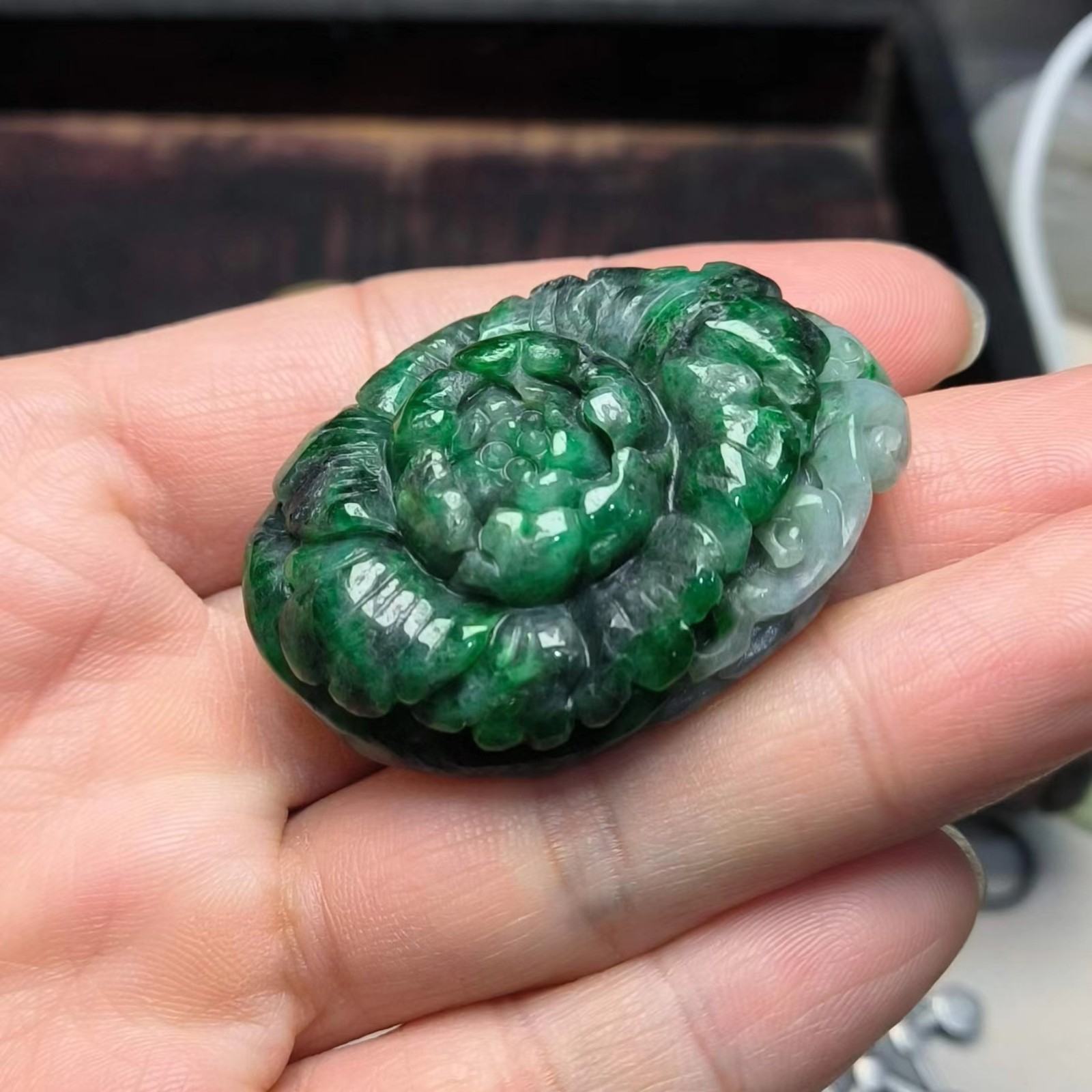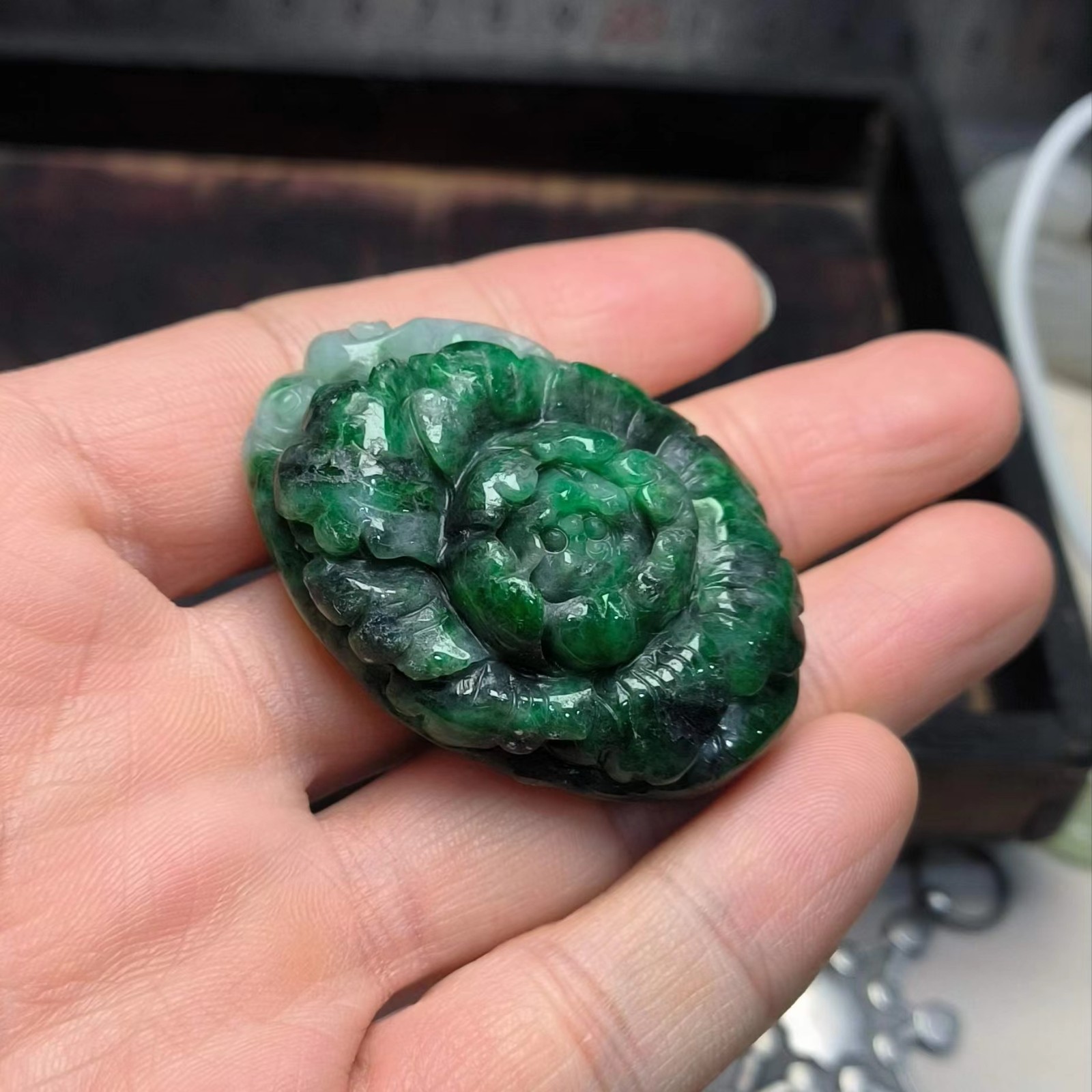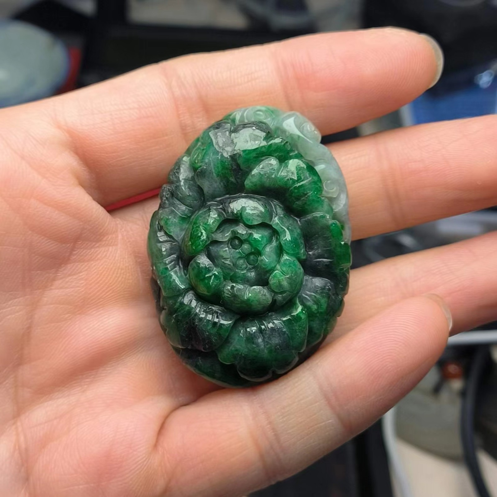 ⿻ 商品名称:深绿 牡丹花 翡翠A货