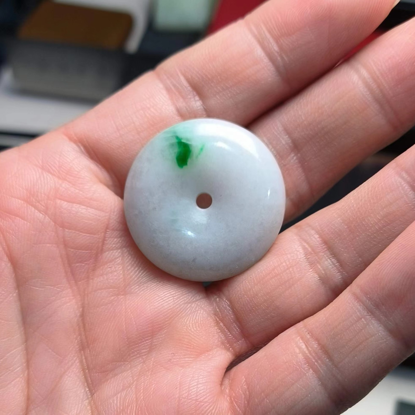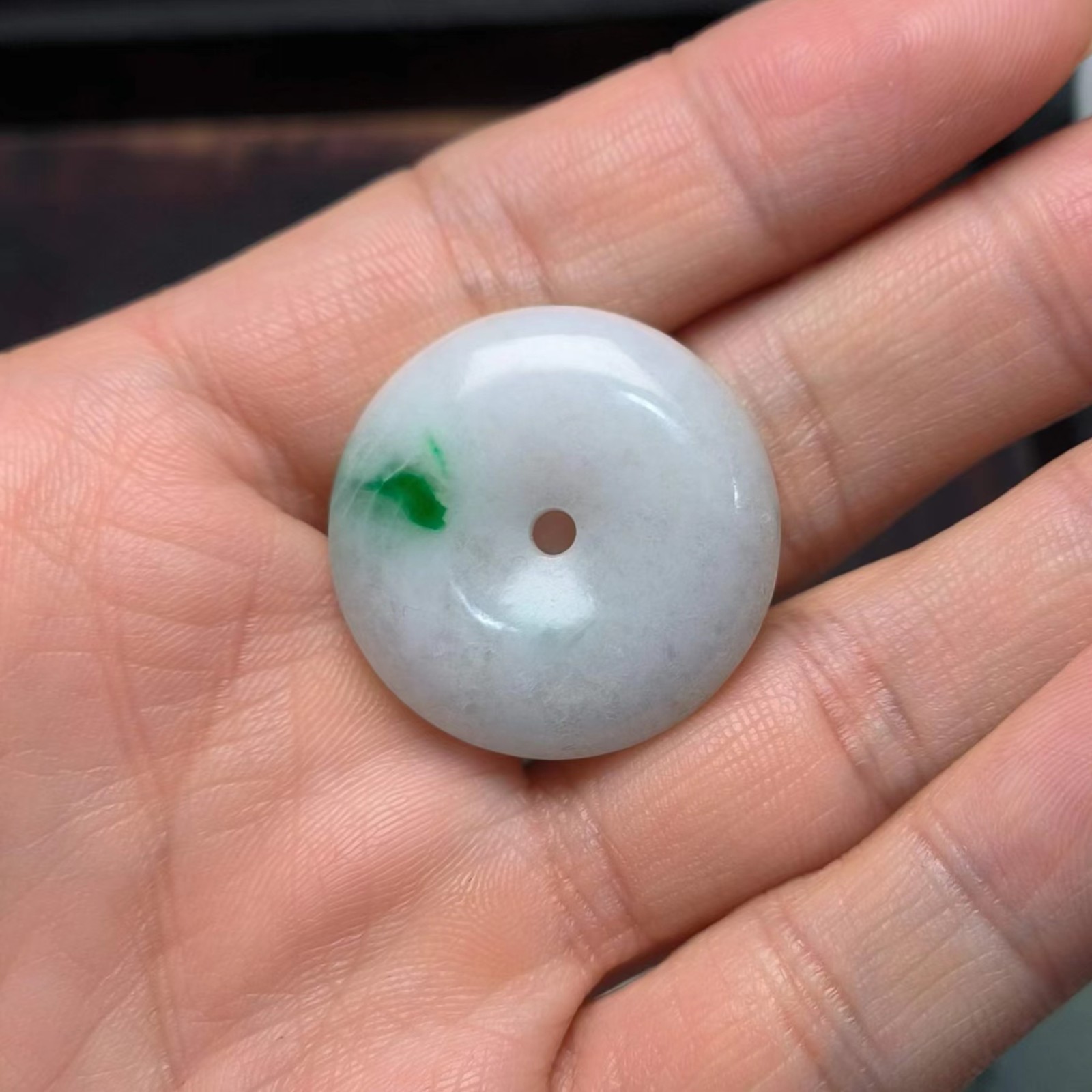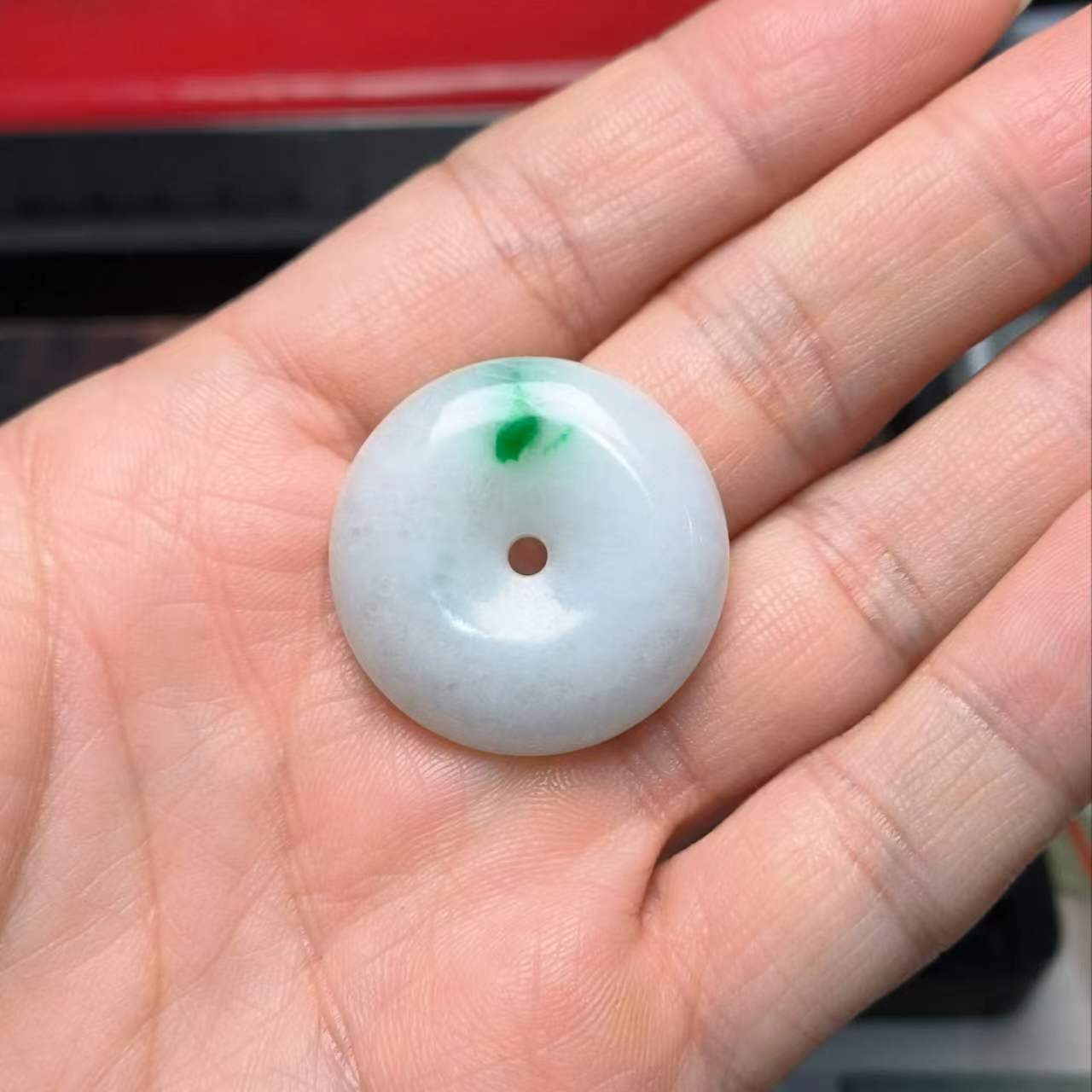 ⿷ 商品名称:三色阳绿平安扣 翡翠A货