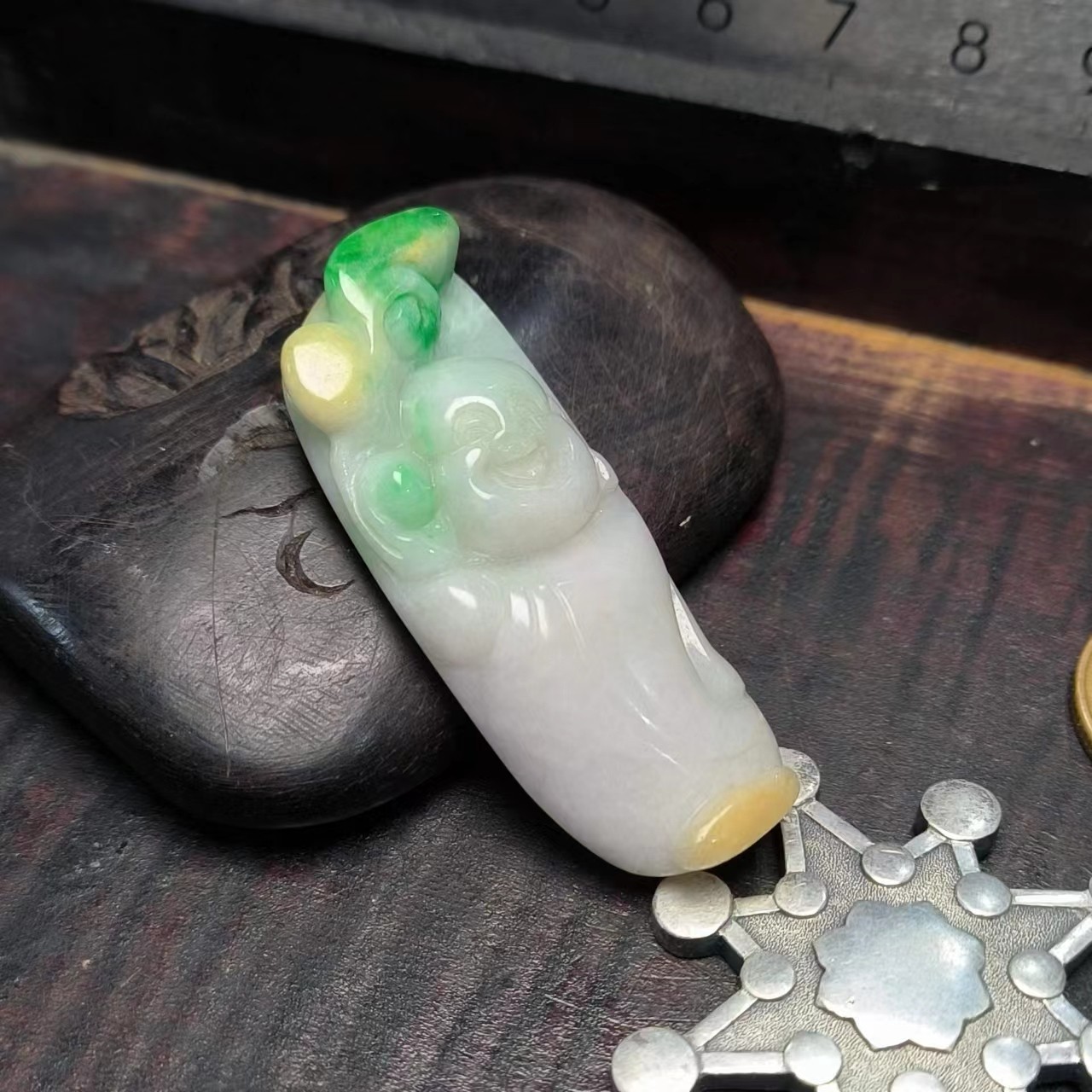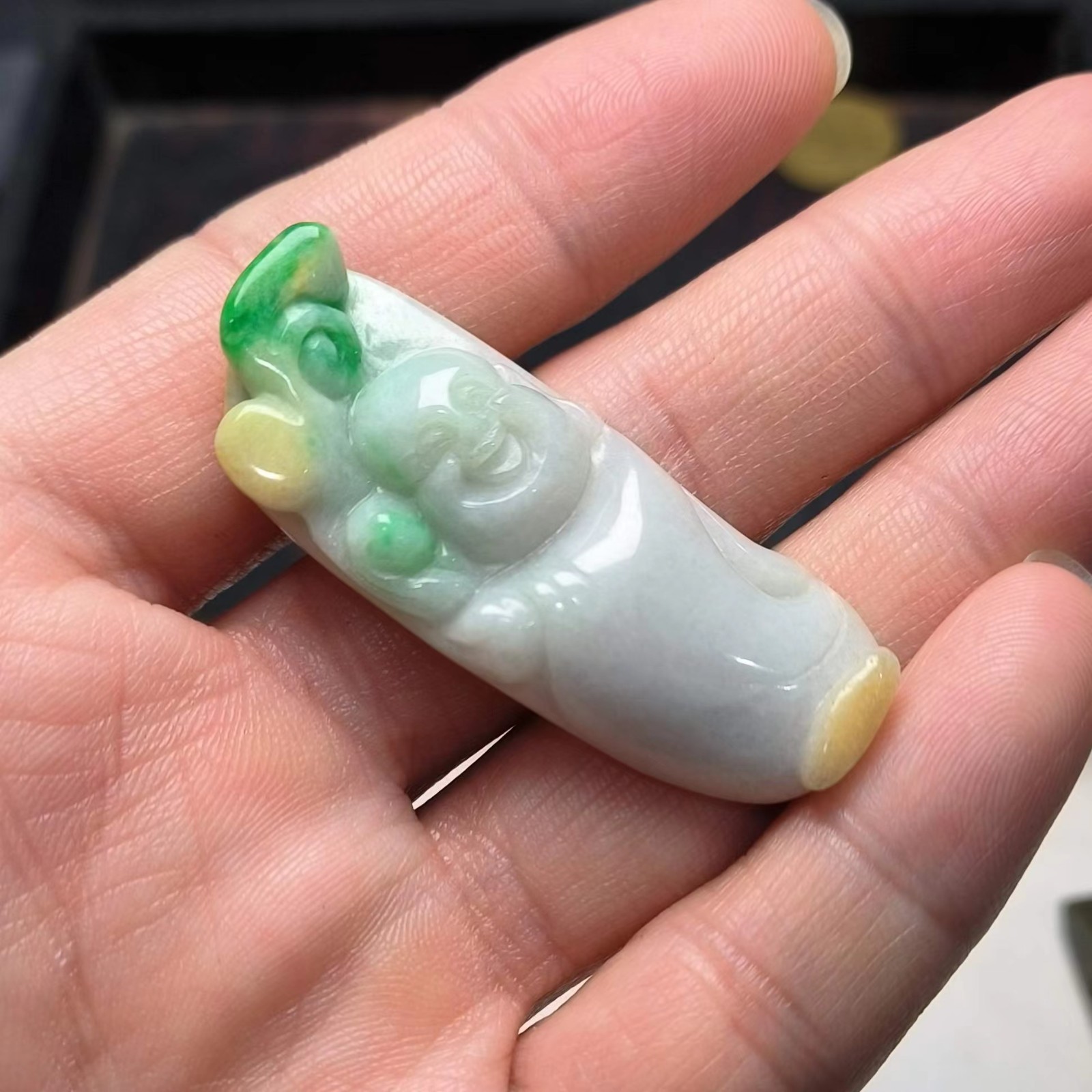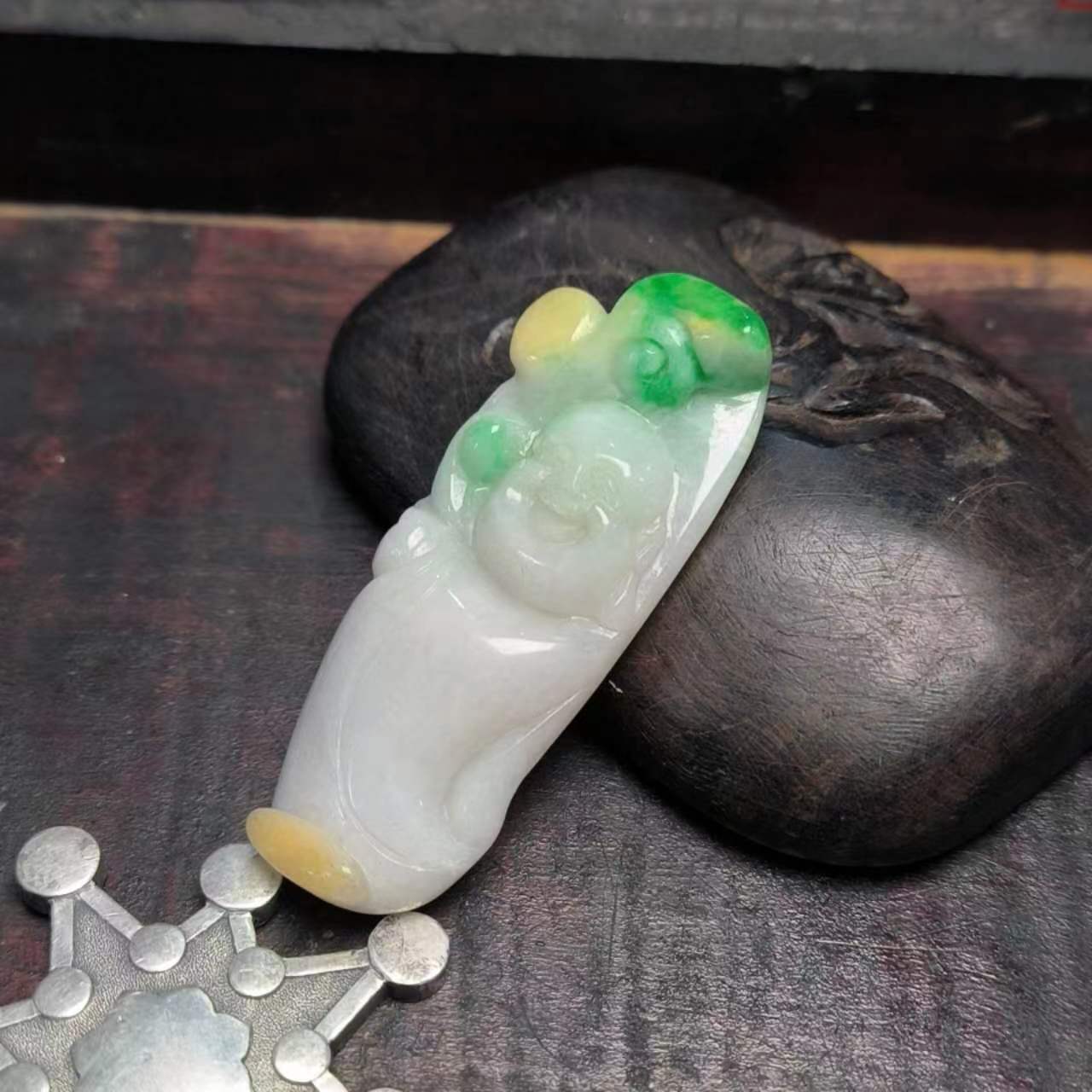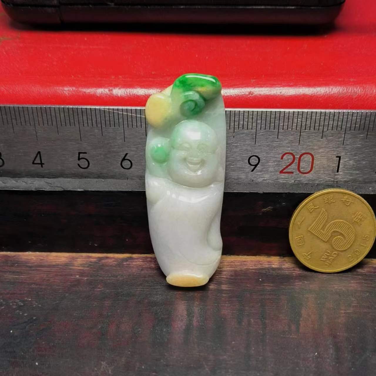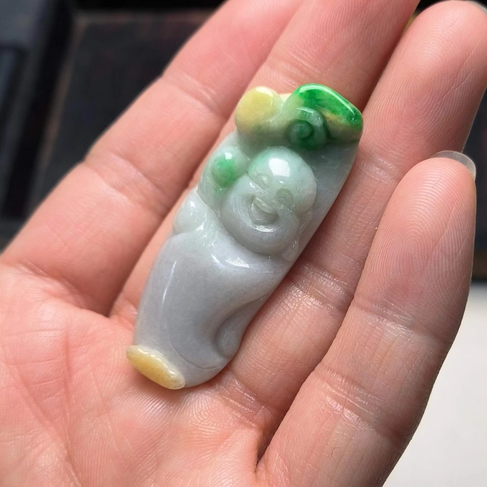三色 阳绿 弥勒佛 翡翠A货 2024120071